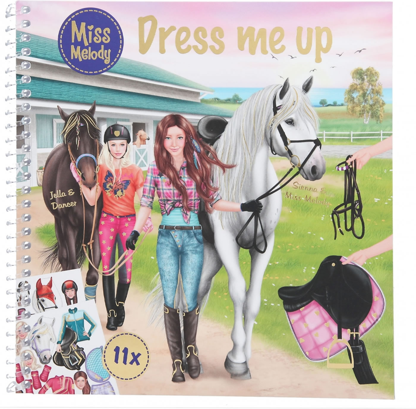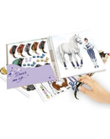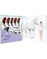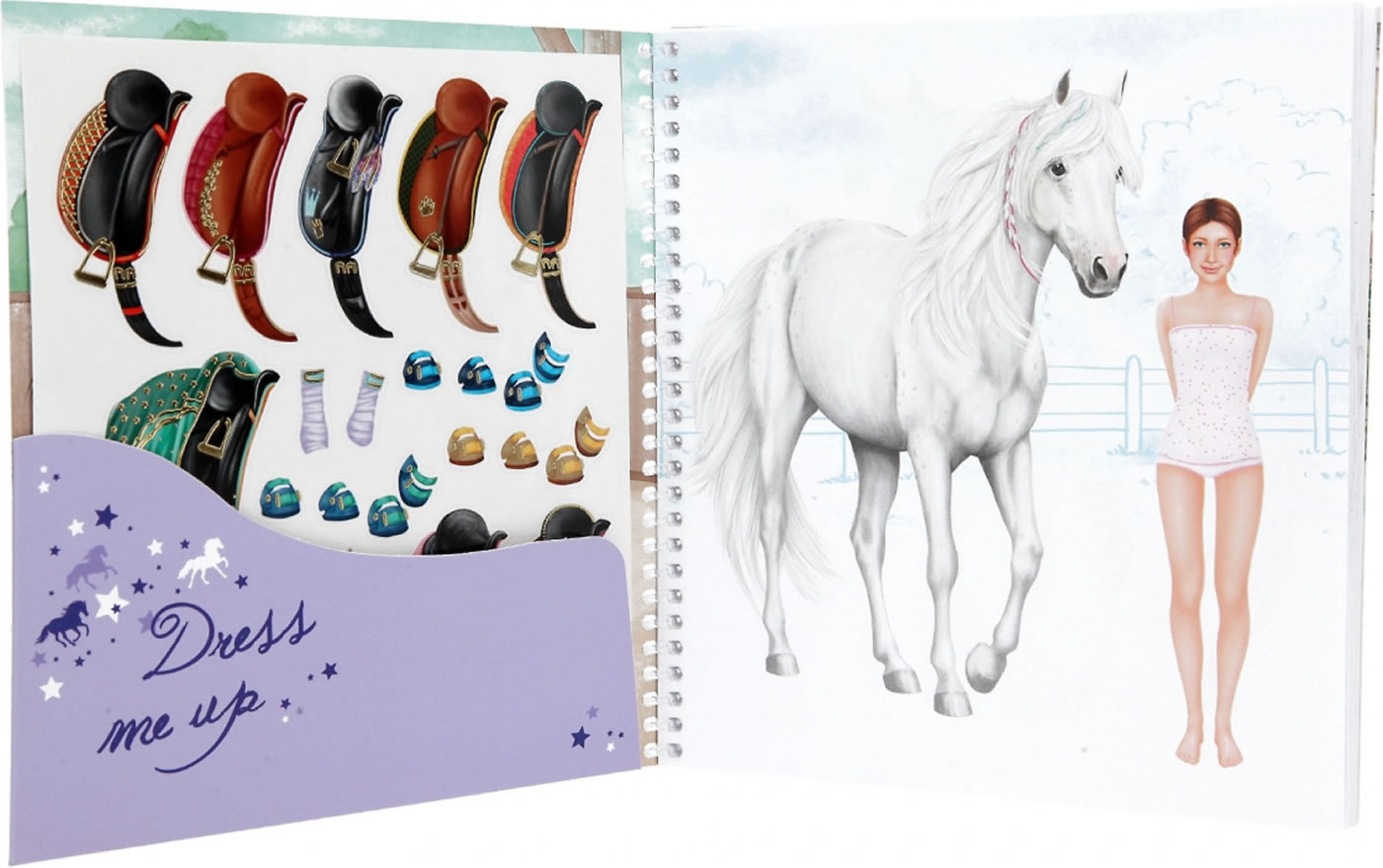 Auf 24 Seiten kannst du tolle Outfits für den Ausritt oder das Reitturnier entwerfen. Auf den 11 Stickerbögen findest du Accessoires für die Pferde und ihre Reiterinnen.