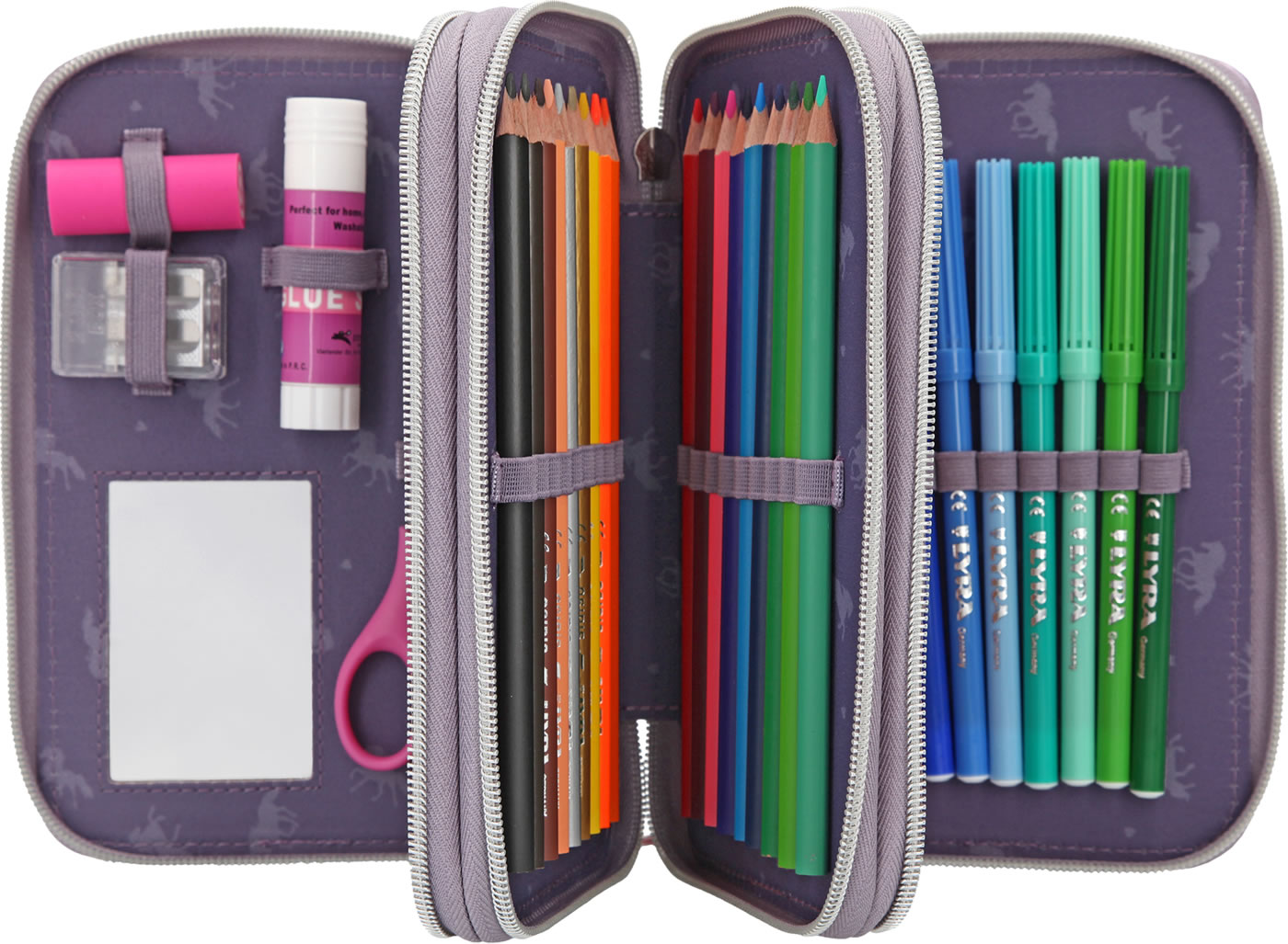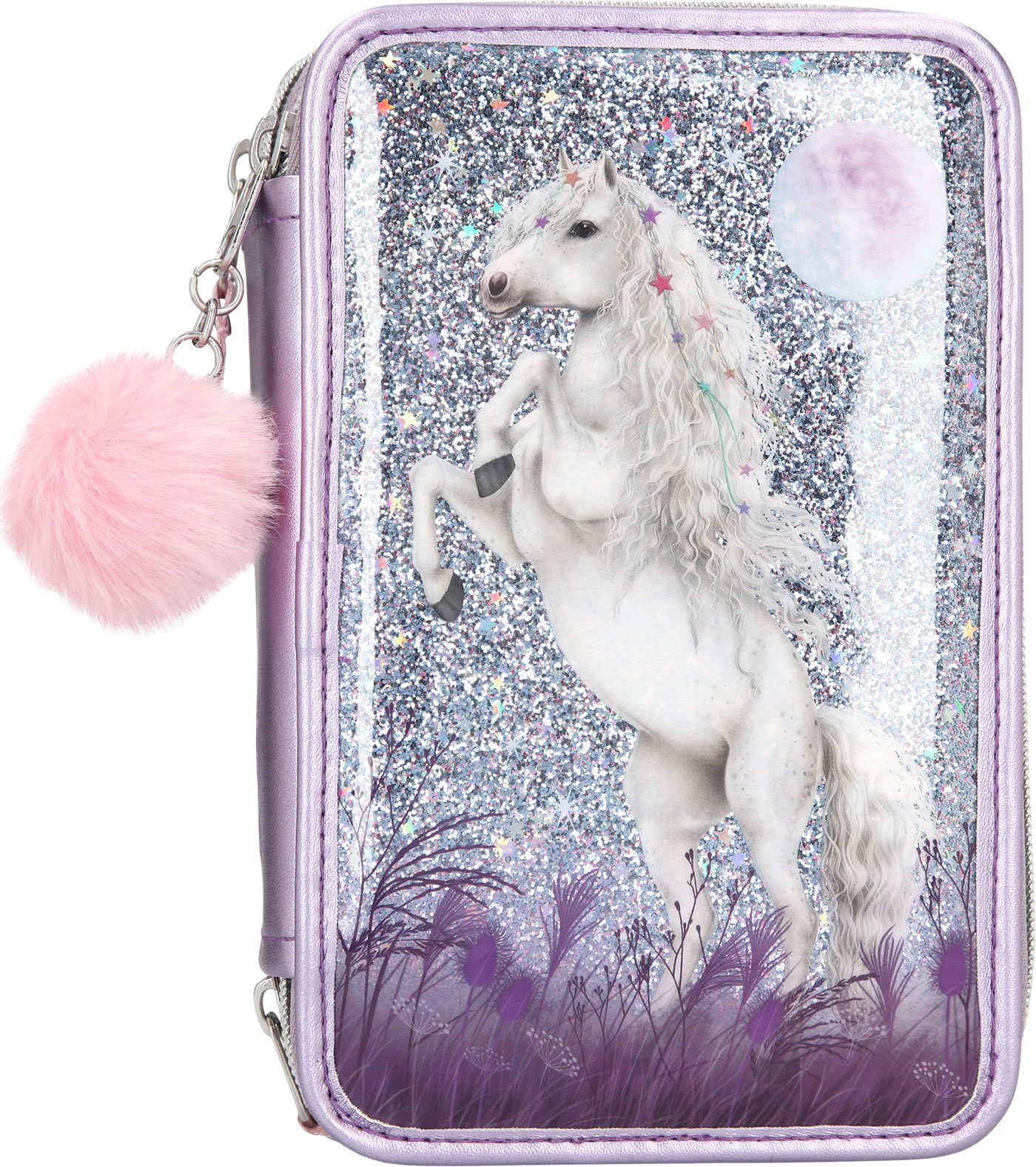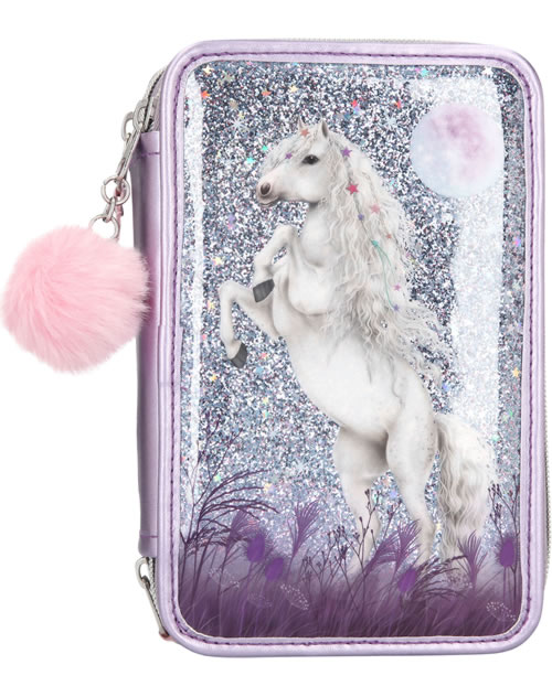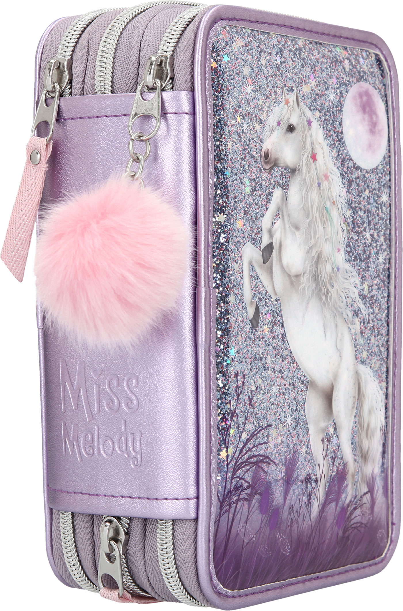 Miss Melody Federtasche mit drei Fächern gefüllt Traumpferd Glitzer lila