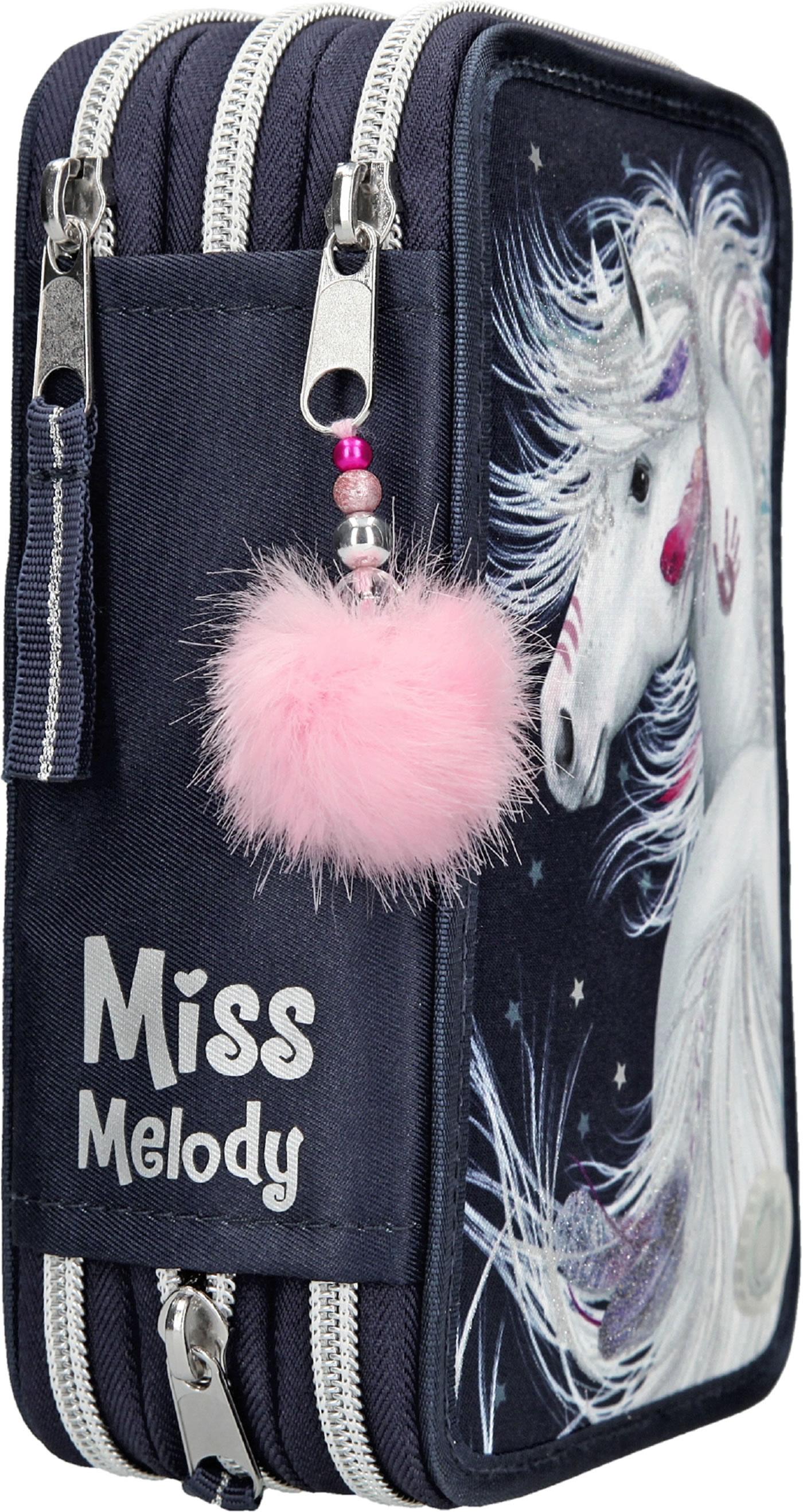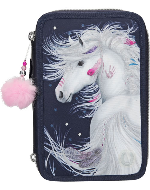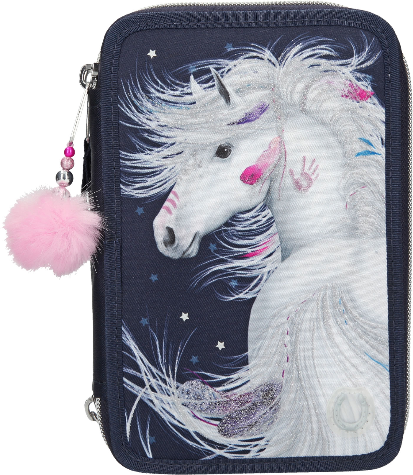 Miss Melody Federtasche mit drei Fächern gefüllt Traumpferd mit LED