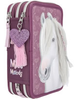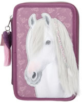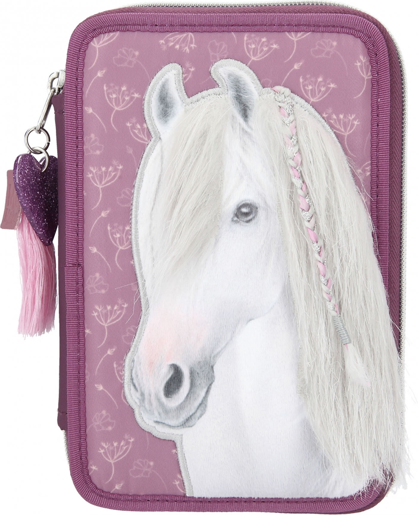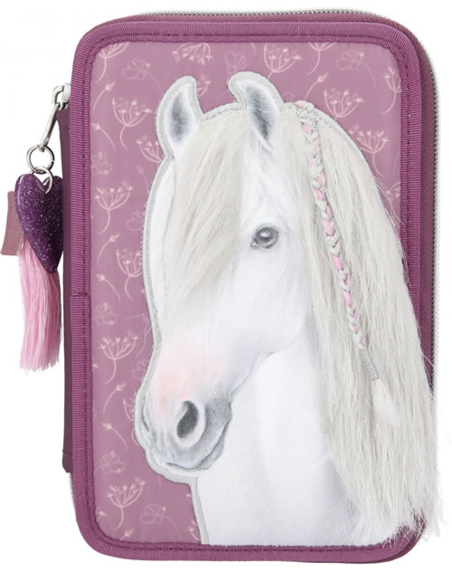 Tolle Federtasche mit Pusteblumen-Muster und echter Mähne, die mit der kleinen Bürste pflegen lässt.