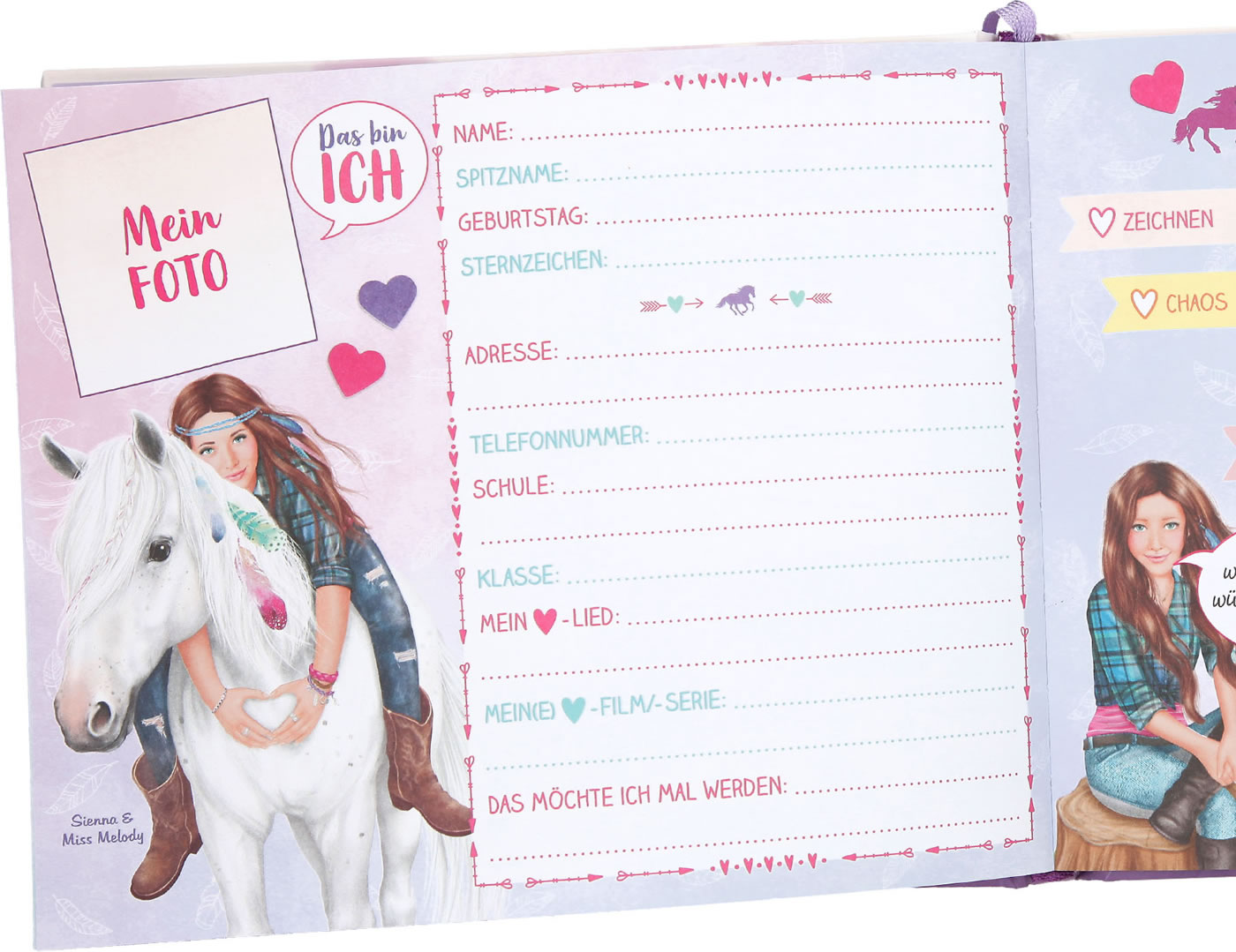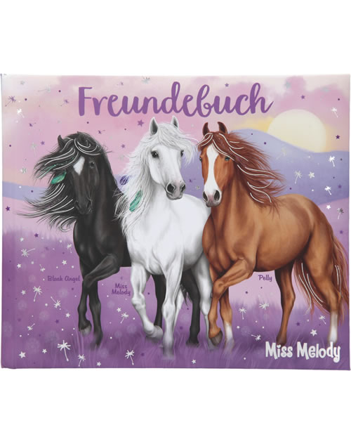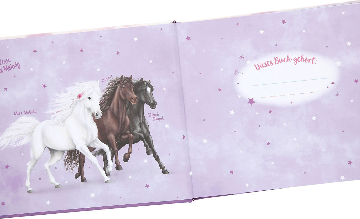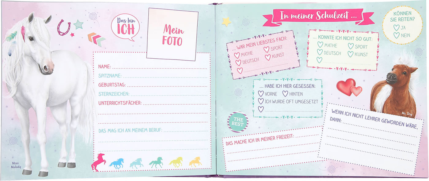 Diese Freundebuch bietet dir und deinen Freundinnen Platz für all eure Lieblingspferde, Hobbies, liebste Musik und was ihr noch so übereinander wissen wollt - und das alles im Miss Melody Design.