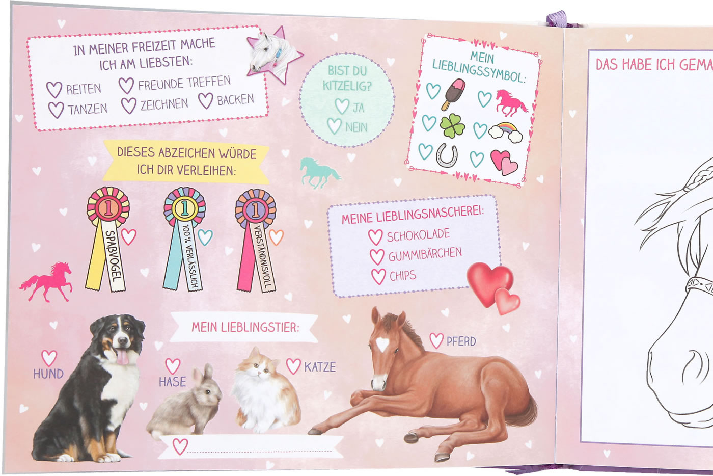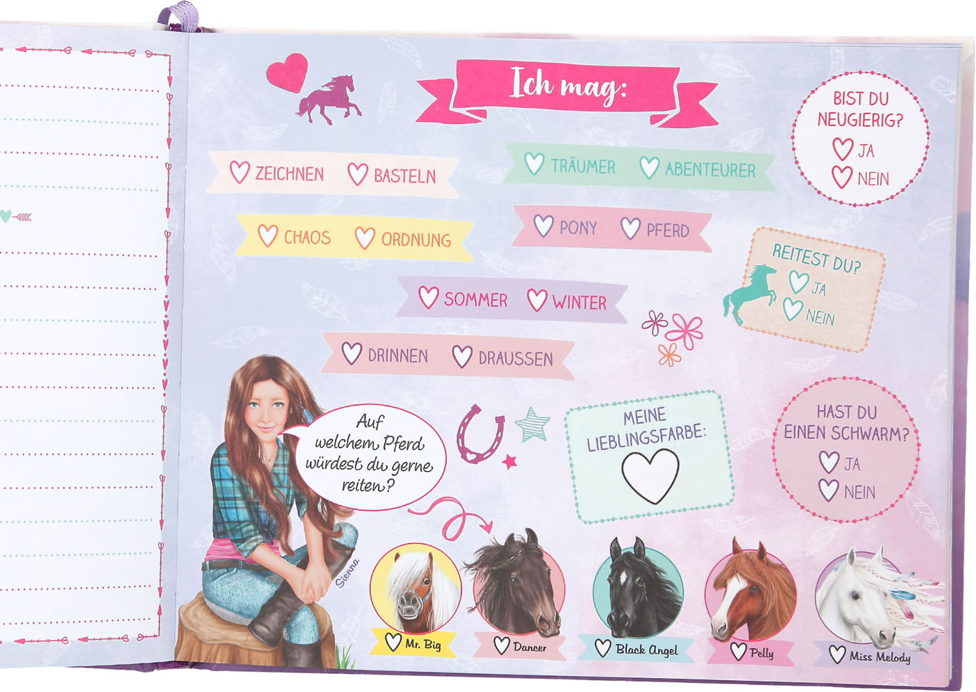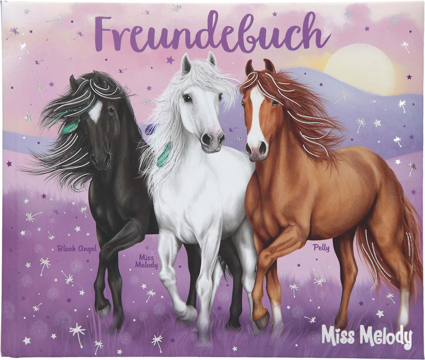 Diese Freundebuch bietet dir und deinen Freundinnen Platz für all eure Lieblingspferde, Hobbies, liebste Musik und was ihr noch so übereinander wissen wollt - und das alles im Miss Melody Design.