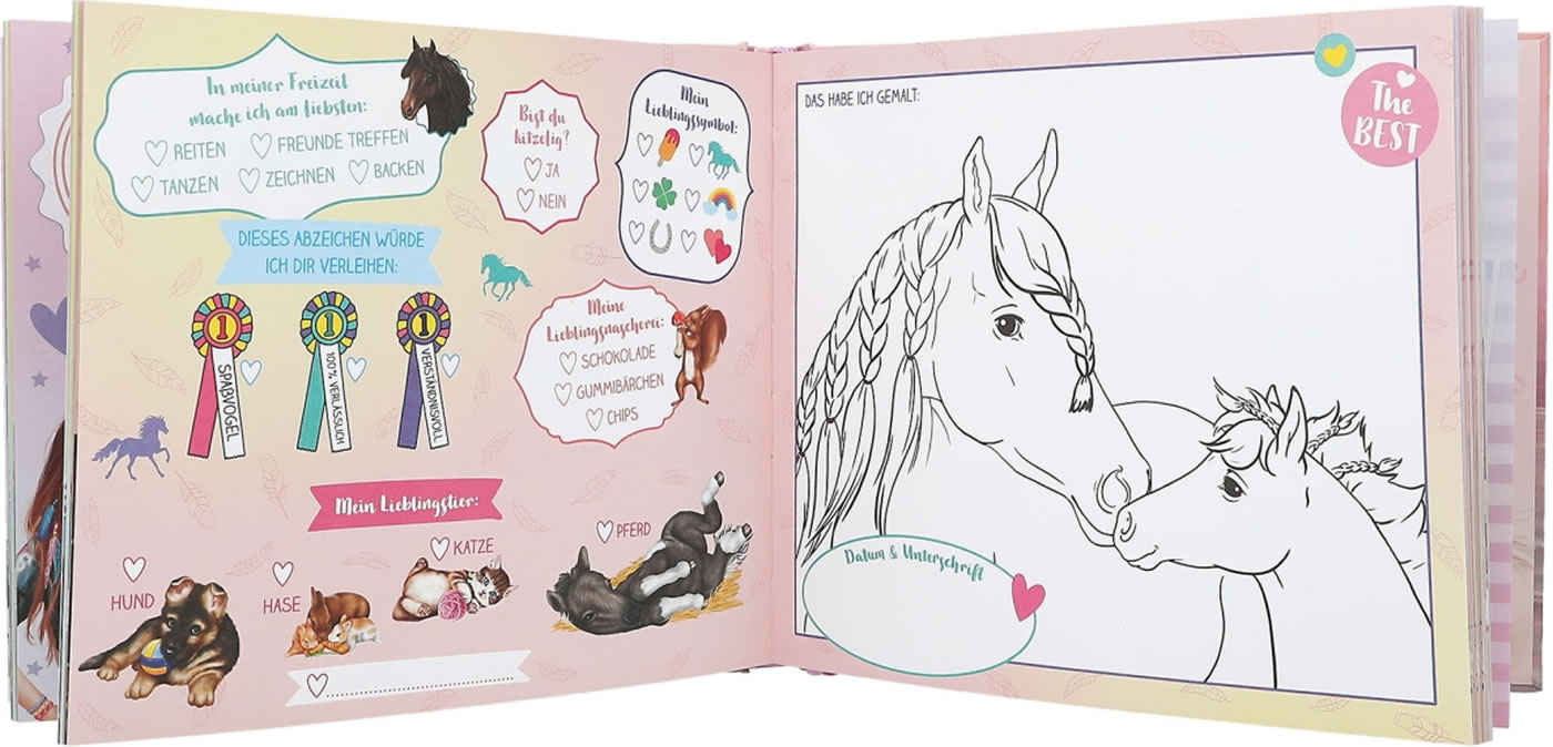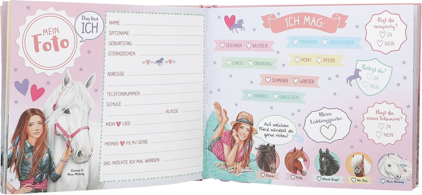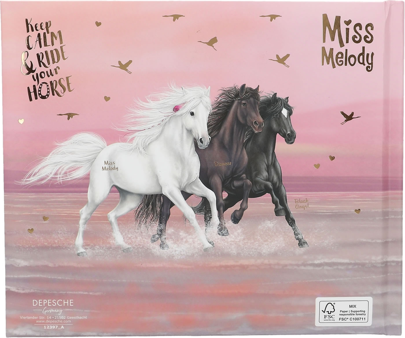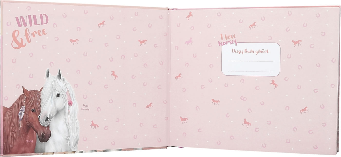 Das Freundebuch von Miss Melody in wunderschönen Rosétönen und mit traumhaften Pferden im Sonnenuntergang hat 108 liebevoll illustrierte Seiten für die Einträge der liebsten Menschen. Mit wattiertem Cover.