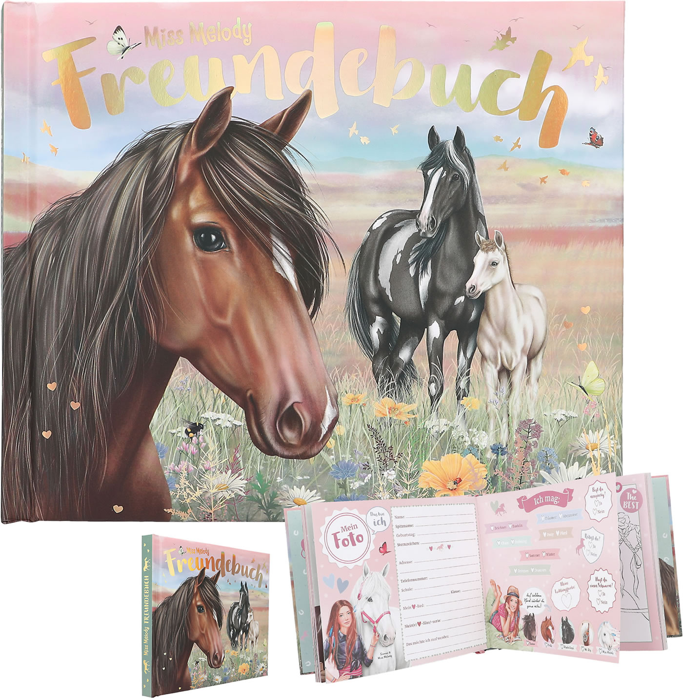 Zarte Farben, eine herrliche Blumenwiese und traumhaft schöne Pferde: Das Freundebuch von Miss Melody hat 108 liebevoll illustrierte Seiten mit jeder Menge Platz für die Antworten von Freunden und Lehrern. Zum Eintragen, Erinnern und immer wieder Anschauen.
