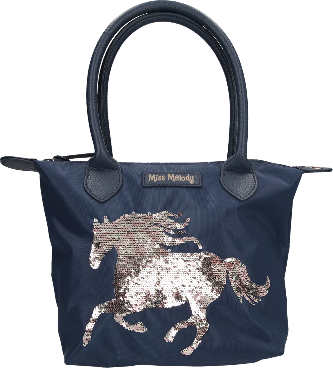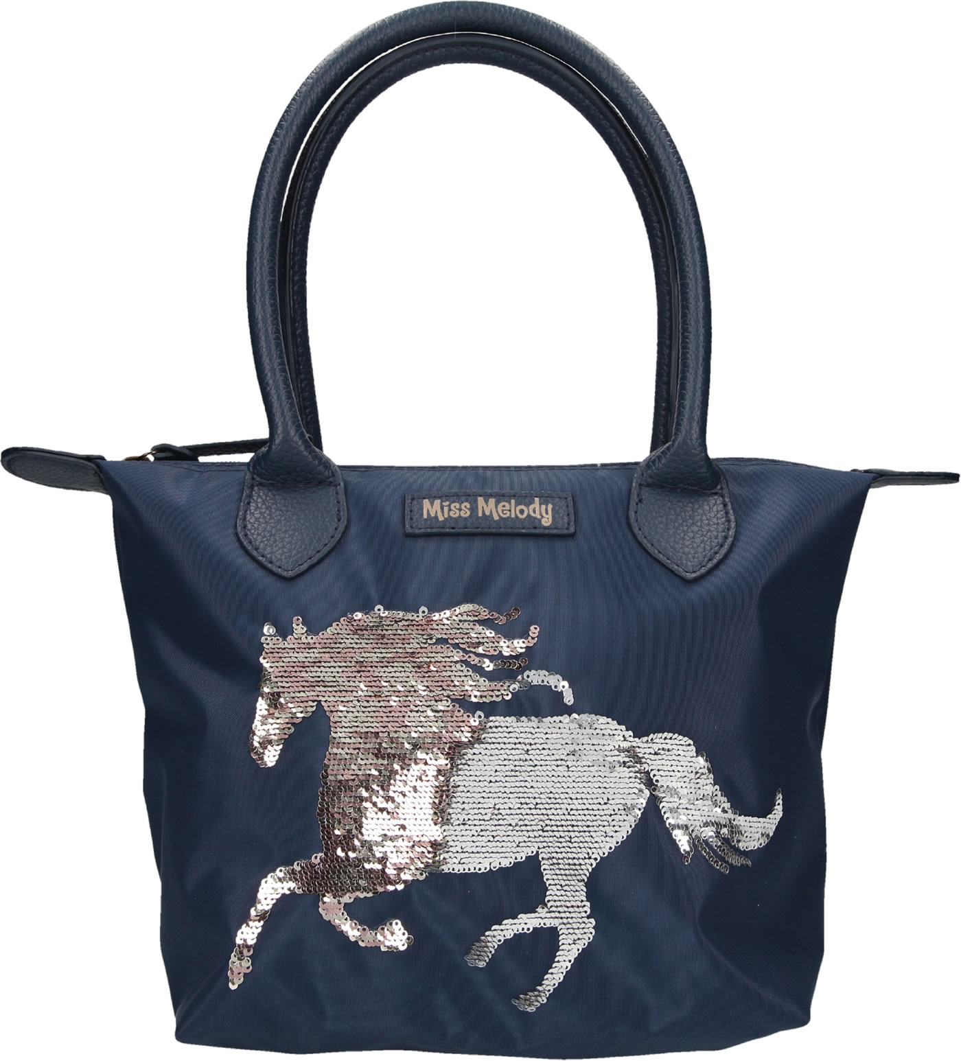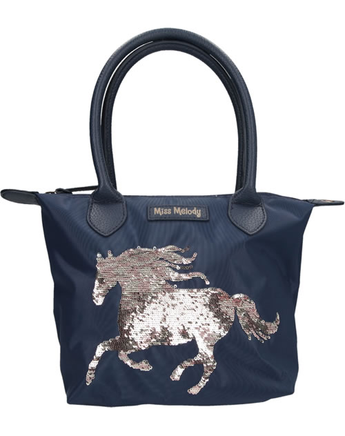 Miss Melody Handtasche mit Streich-Pailletten Pferd blau
