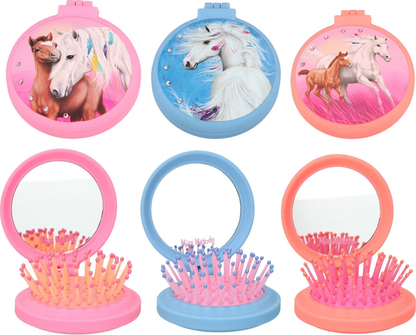 Miss Melody Klapp-Haarbürste mit Spiegel und Glitzersteinen 8749/D