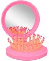Praktische Haarbürste, die in jede Tasche passt - und ein Spiegel ist auch gleich dabei.