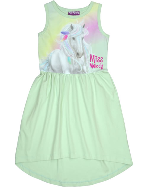 Hübsches Kleid in hellgrün von MISS MELODY mit tollem Pferde-Motiv auf der Vorderseite.
