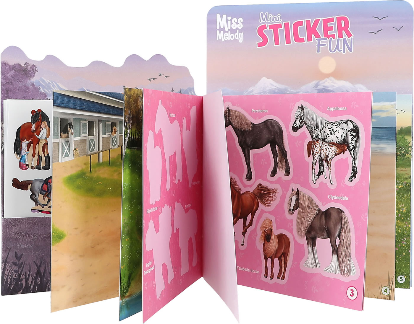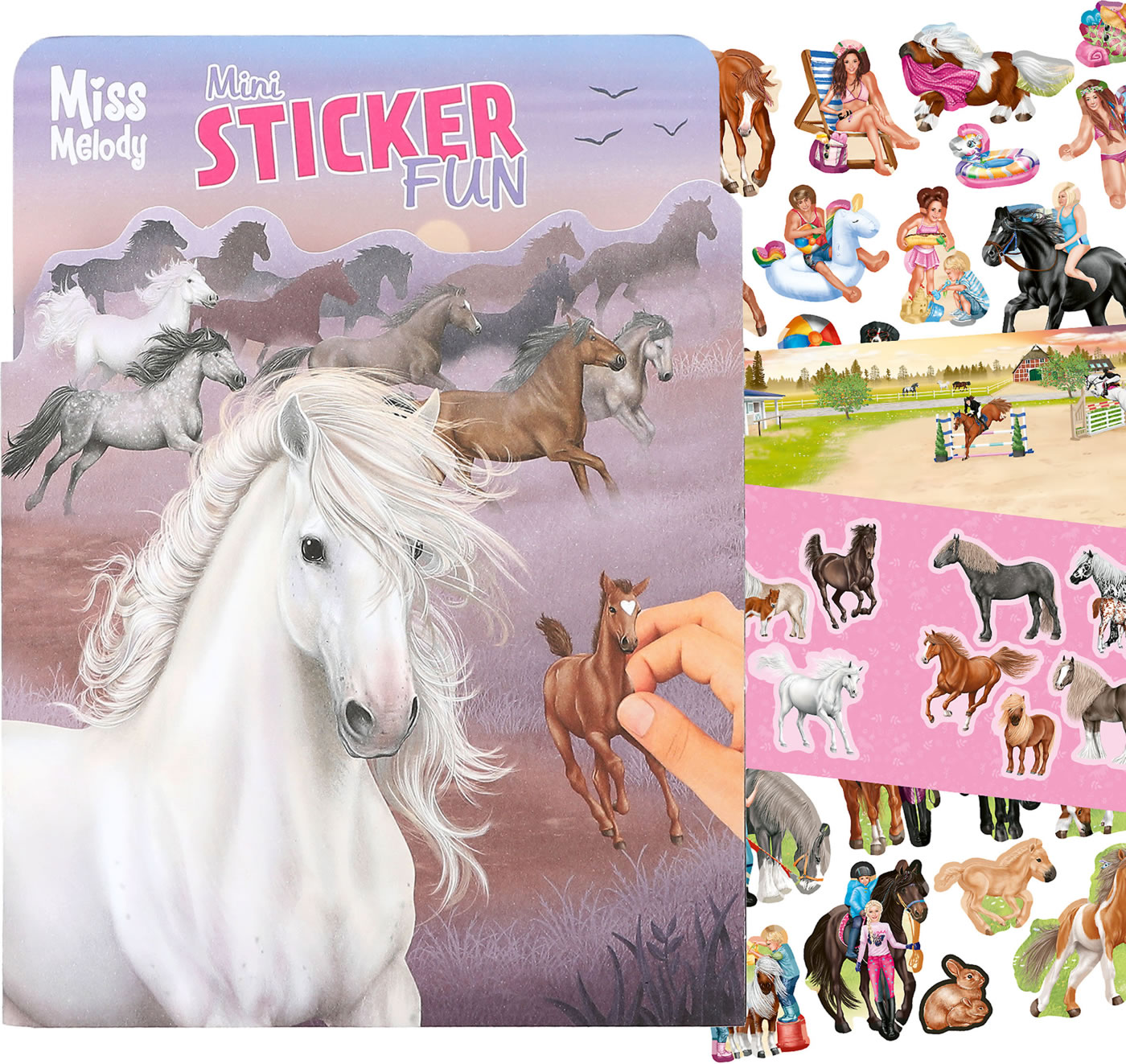 Miss Melody Mini Sticker Fun: Das kleine Pferde-Stickerbuch hat ein tolles, figürlich ausgestanztes Cover und 12 liebevoll illustrierte Hintergrund-Seiten, die mit den Stickern von 7 Stickerbogen gestaltet werden können.