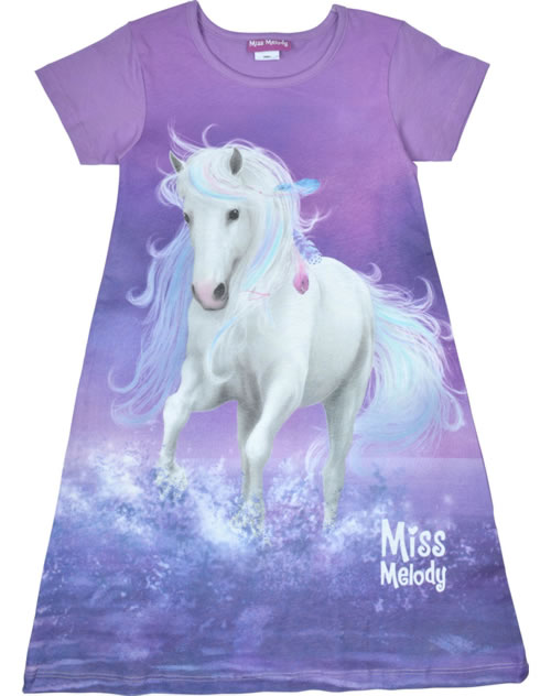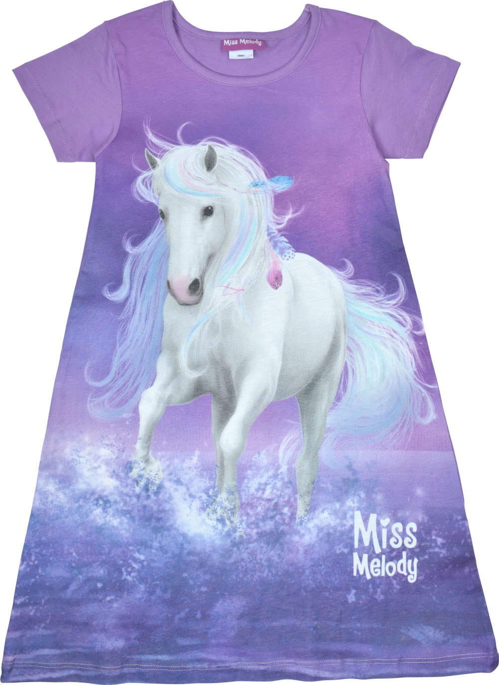 Hübsches Nachthemd mit kurzen Ärmeln in lila von MISS MELODY mit tollem Pferde-Motiv auf der Vorderseite.