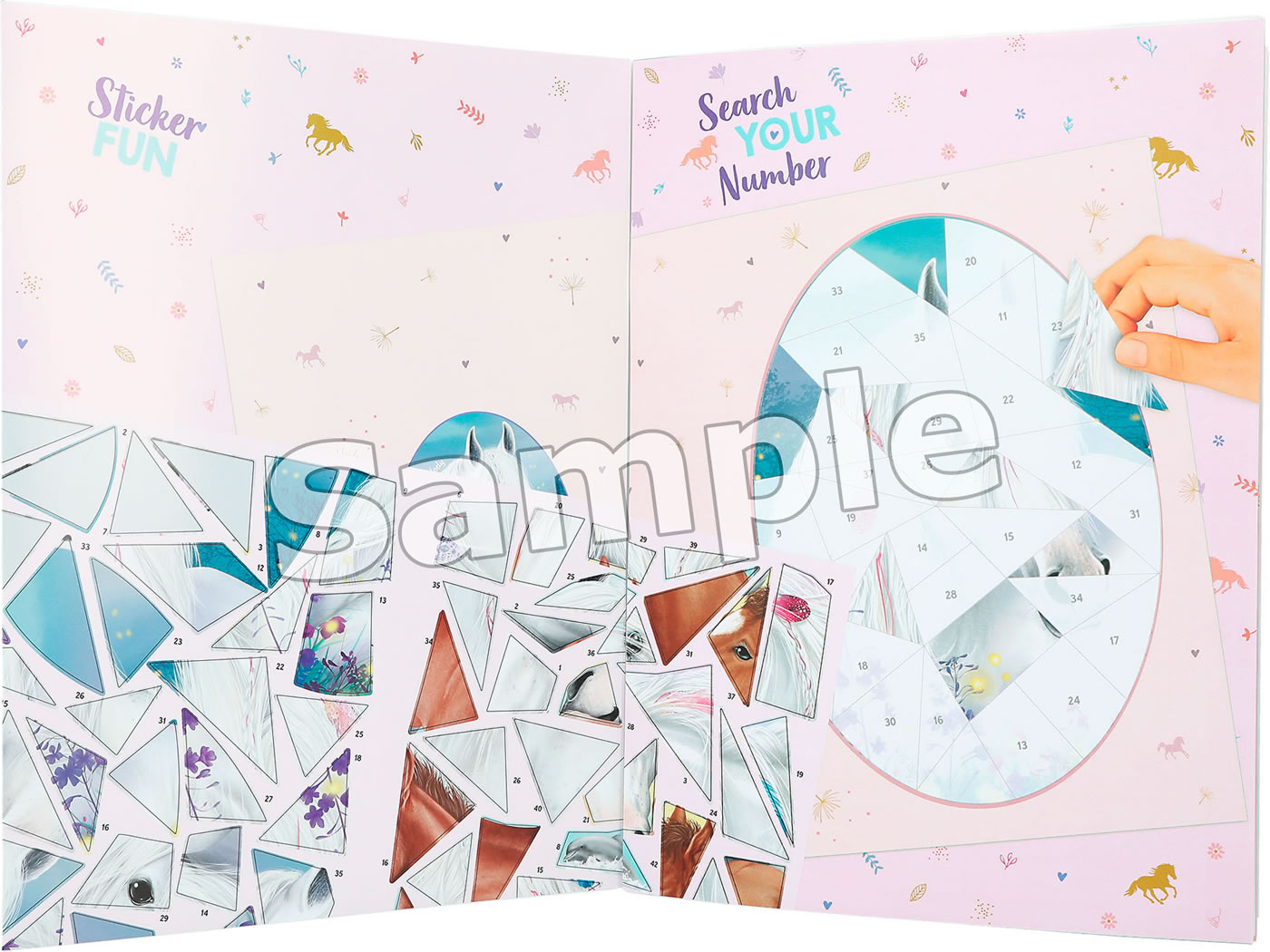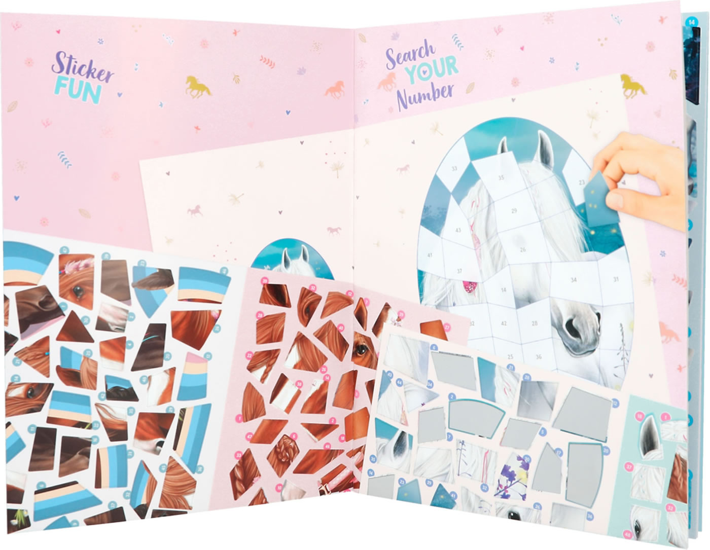 Malen nach Zahlen? Viel besser: Stickern nach Zahlen! Dieses Stickerbuch von Miss Melody hat 16 Inhaltsseiten und 8 Seiten Sticker. Jedes Motiv ist in superviele Felder unterteilt und jedes Feld hat eine Nummer. Nun heißt es, den richtigen Sticker zu finden, der ebenfalls mit dieser Nummer markiert ist. Für Pferde-Kunstwerke mit Köpfchen!