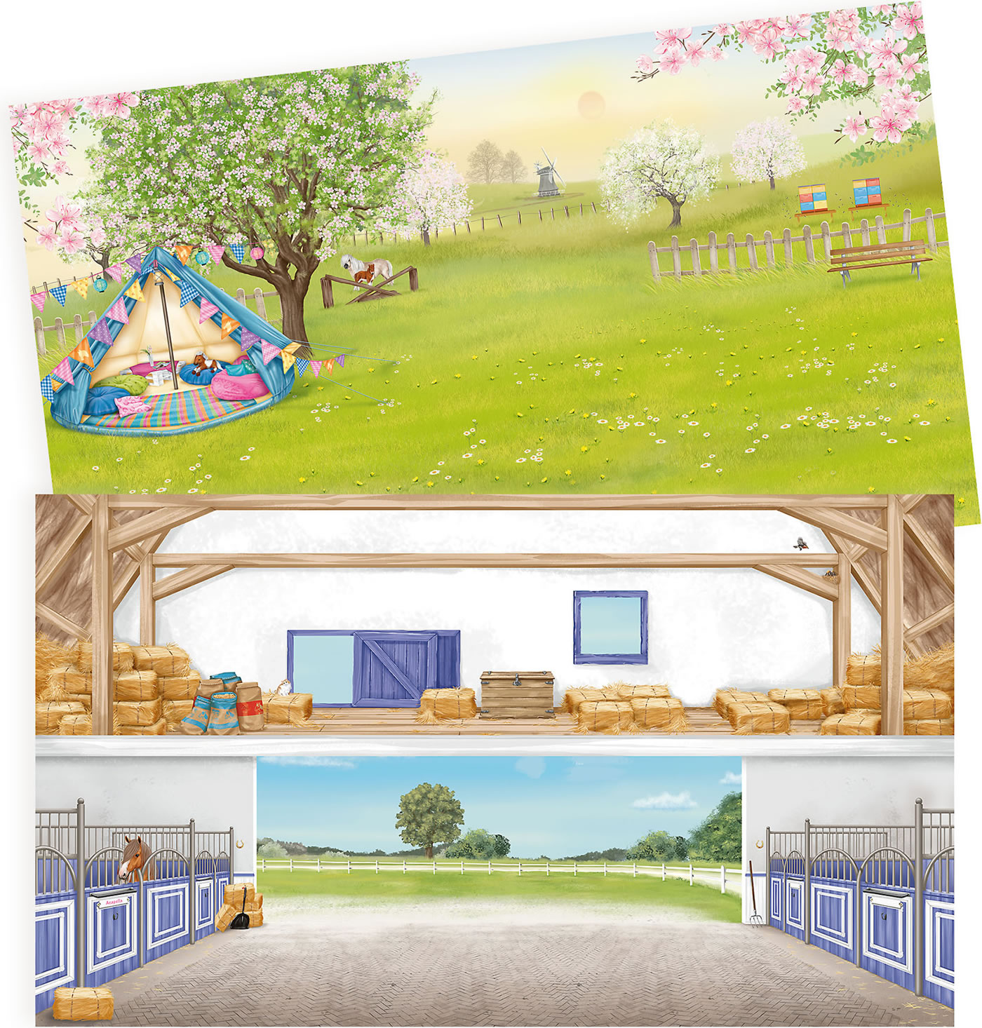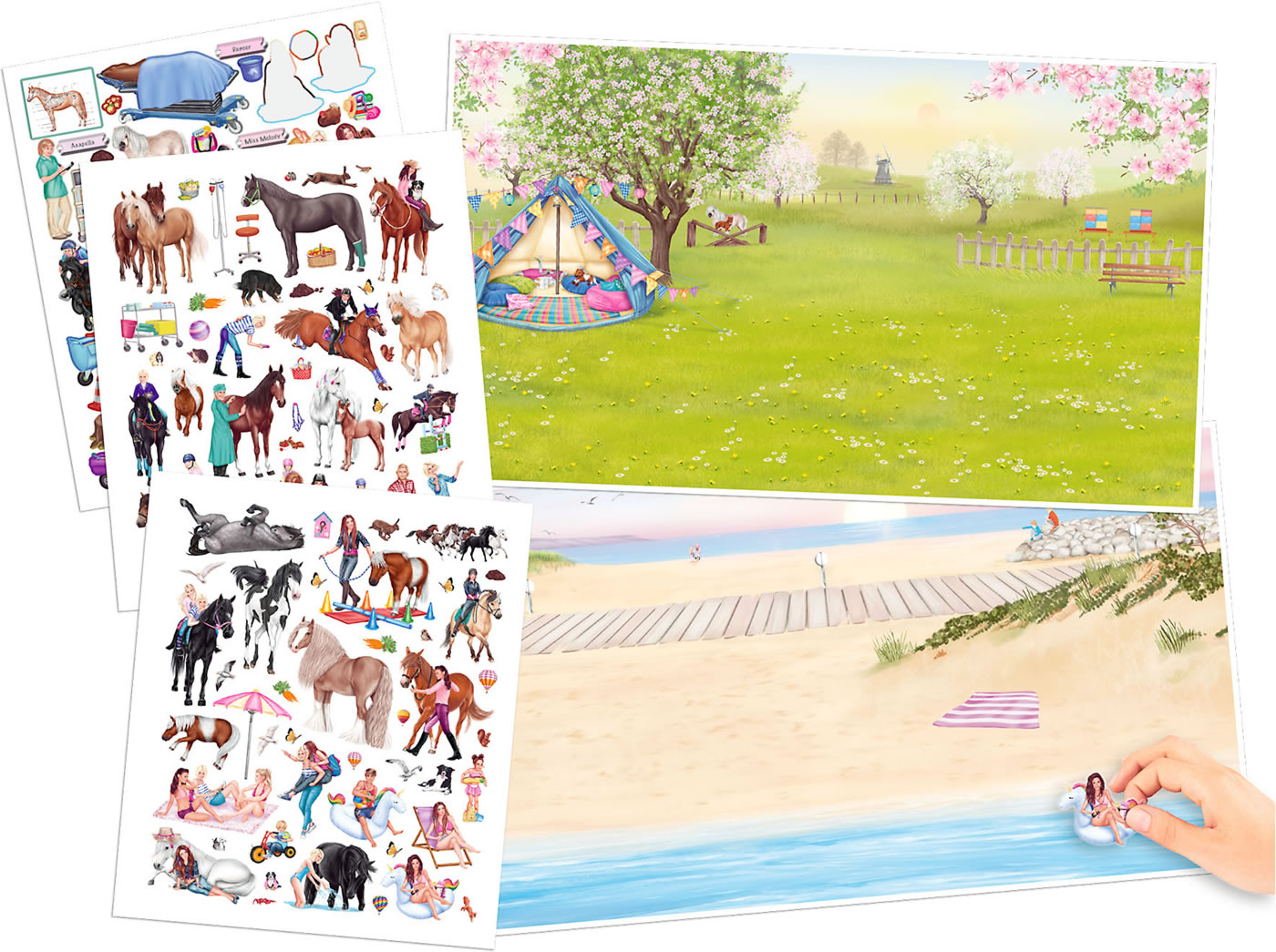 Gemütliches Reitergut, sportliches Spring-Turnier und glamouröse Voltigier-Show: In diesem 24-seitigen Heft von Miss Melody mit zwei Doppelseiten Folien-Stickern und 1 Doppelseite Stickern mit Glitter-Veredlung dreht sich alles um das große Glück auf dem Rücken der Pferde.
