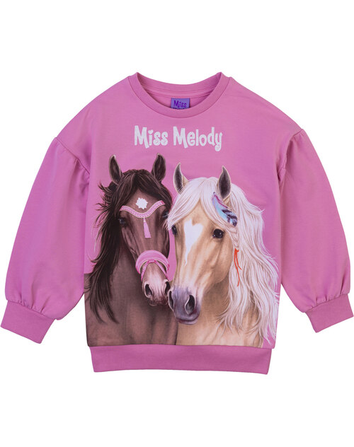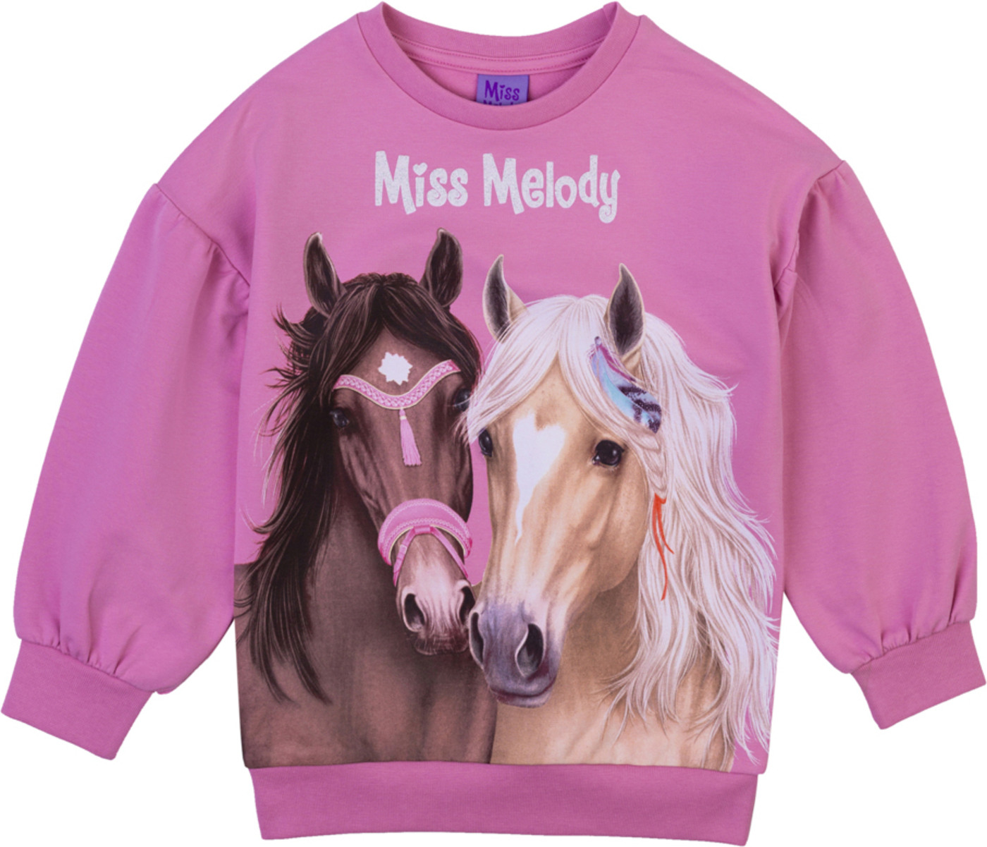 Zusätzlich wird das Sweatshirt mit einem glitzernden Miss Melody-Print geziert.