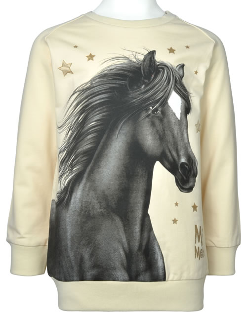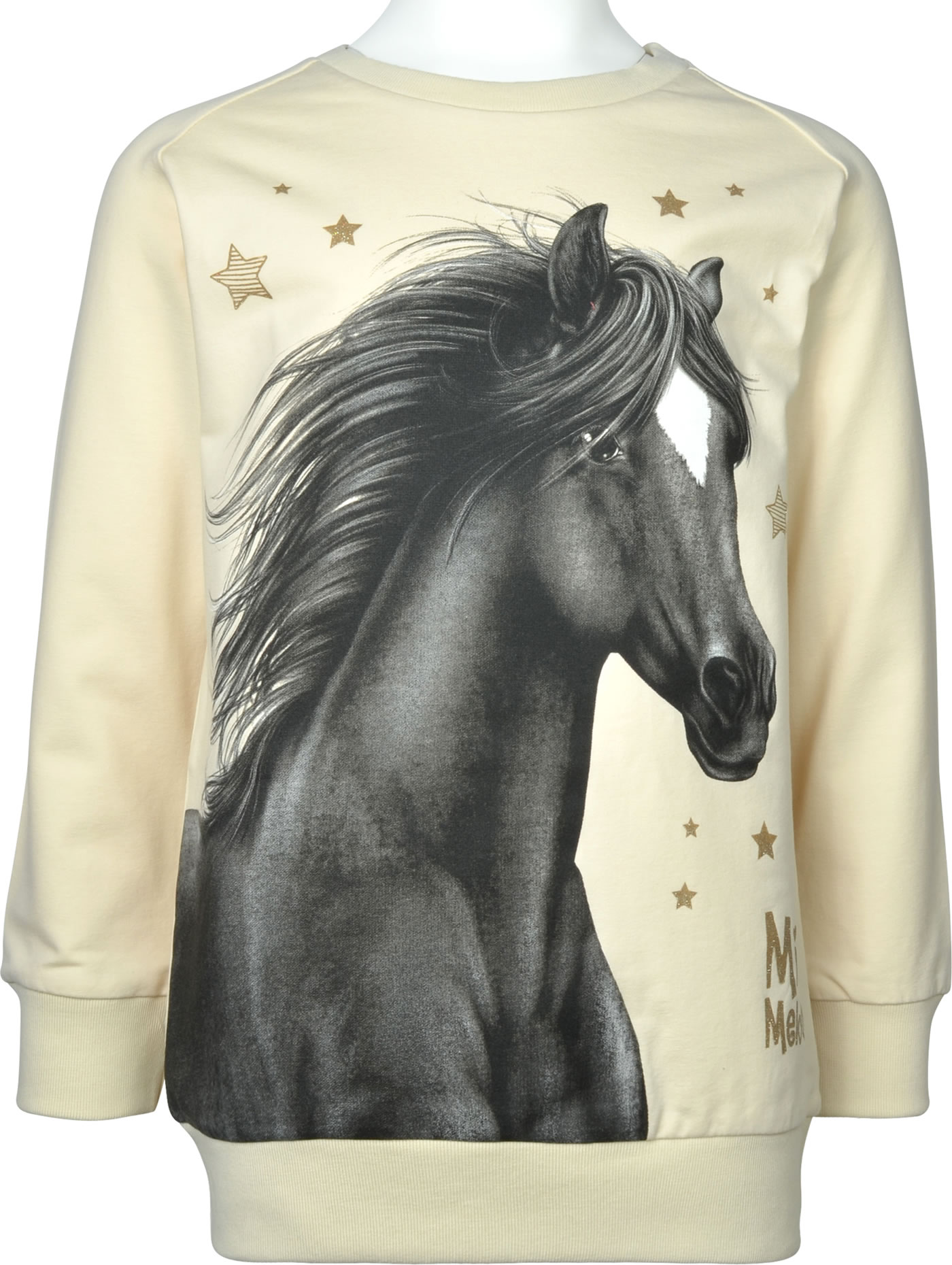 Wunderschönes cremefarbenes Sweatshirt von MISS MELODY mit spektakulärem Pferdemotiv auf der Vorderseite.