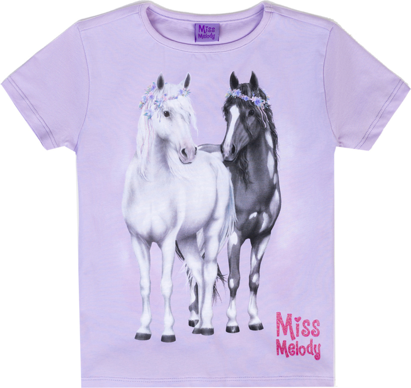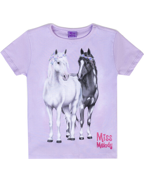 Hübsches T-Shirt in lila von MISS MELODY mit tollem Pferde-Motiv auf der Vorderseite. Zusätzlich ist der Schriftzug "Miss Melody" glitzernd gestaltet.