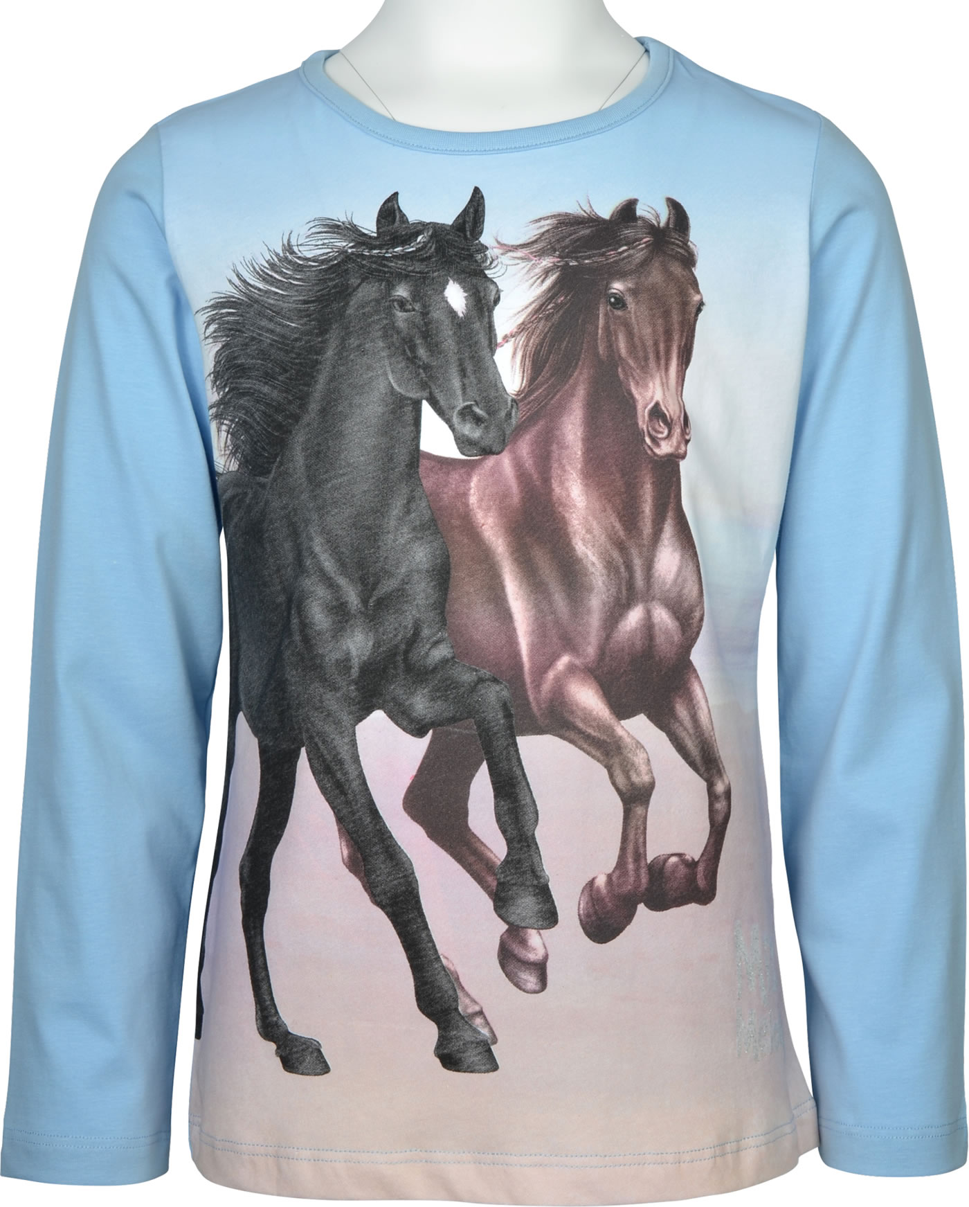 Hübsches T-Shirt mit langen Ärmeln in hellblau von MISS MELODY mit tollem Pferde-Motiv auf der Vorderseite. Ein weiteres schönes Detail ist der glitzernde Miss Melody Schriftzug. Das angenehme Material bietet einen hohen Tragekomfort.