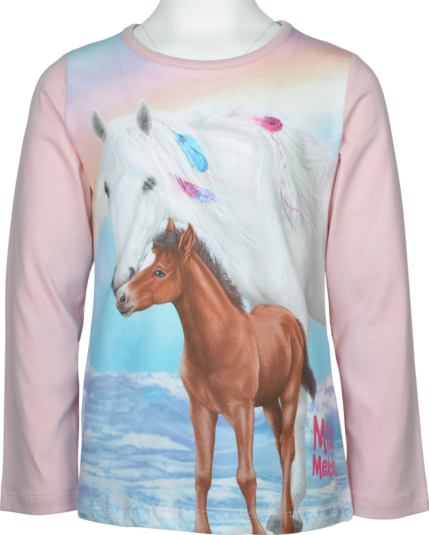 Hübsches T-Shirt mit langen Ärmeln in pink von MISS MELODY mit tollem Pferde-Motiv auf der Vorderseite. Ein weiteres schönes Detail ist der glitzernde Miss Melody Schriftzug. Das angenehme Material bietet einen hohen Tragekomfort.