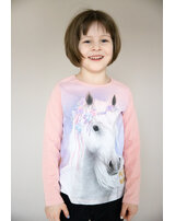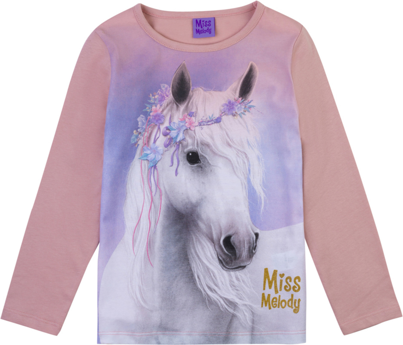 Miss Melody T-Shirt Langarm Pferd mit Blumenkranz- Bridal Rose