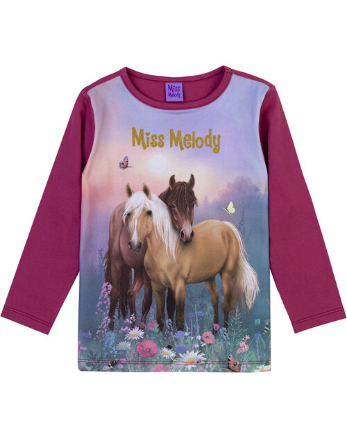 Hier gibt es tolle Langarmshirts in vielen Farben und mit wunderschönen Motiven der beliebten Miss Melody- Pferde!