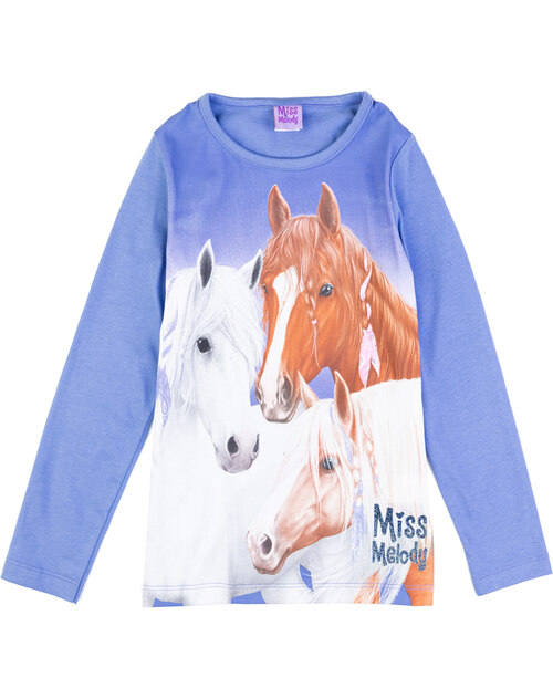 Hier gibt es tolle Langarmshirts in vielen Farben und mit wunderschönen Motiven der beliebten Miss Melody- Pferde!