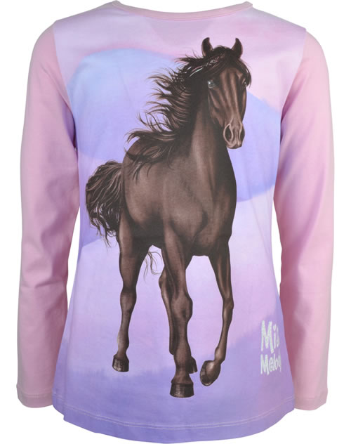 Hübsches Langarm T-Shirt in rosa von MISS MELODY mit spektakulärem Pferdemotiv auf der Vorderseite.