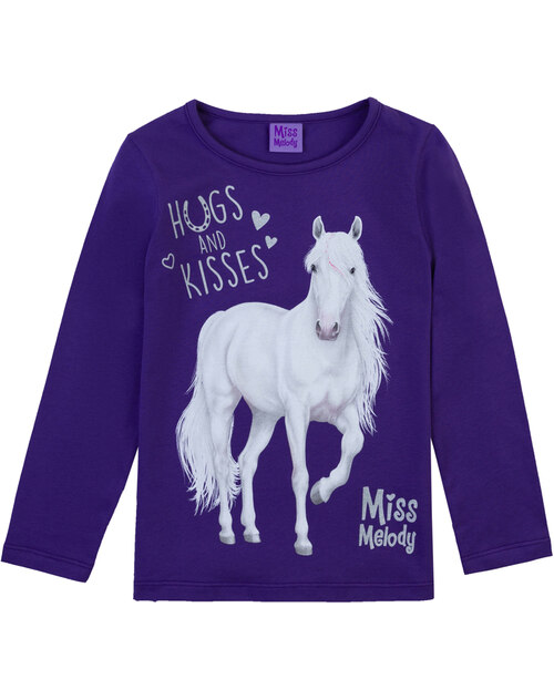 Hier gibt es tolle Langarmshirts in vielen Farben und mit wunderschönen Motiven der beliebten Miss Melody- Pferde!