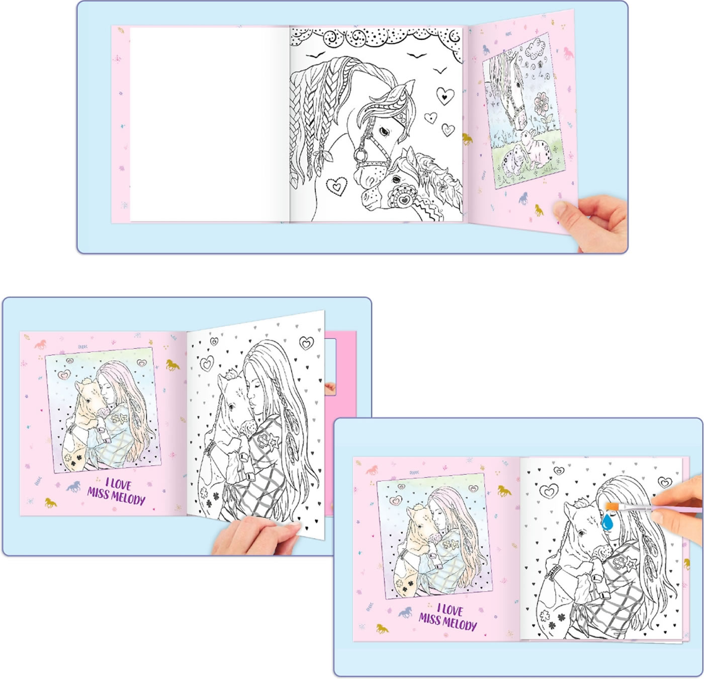 Wasser, marsch! Denn mehr braucht man für dieses zauberhafte Malbuch von Miss Melody nicht: Befeuchtet man den dazugehörigen Pinsel und streicht über die 30 Ausmal-Seiten, werden traumhafte Farben sichtbar. Ein einfacher Mal-Spaß - für einfach schöne Bilder!