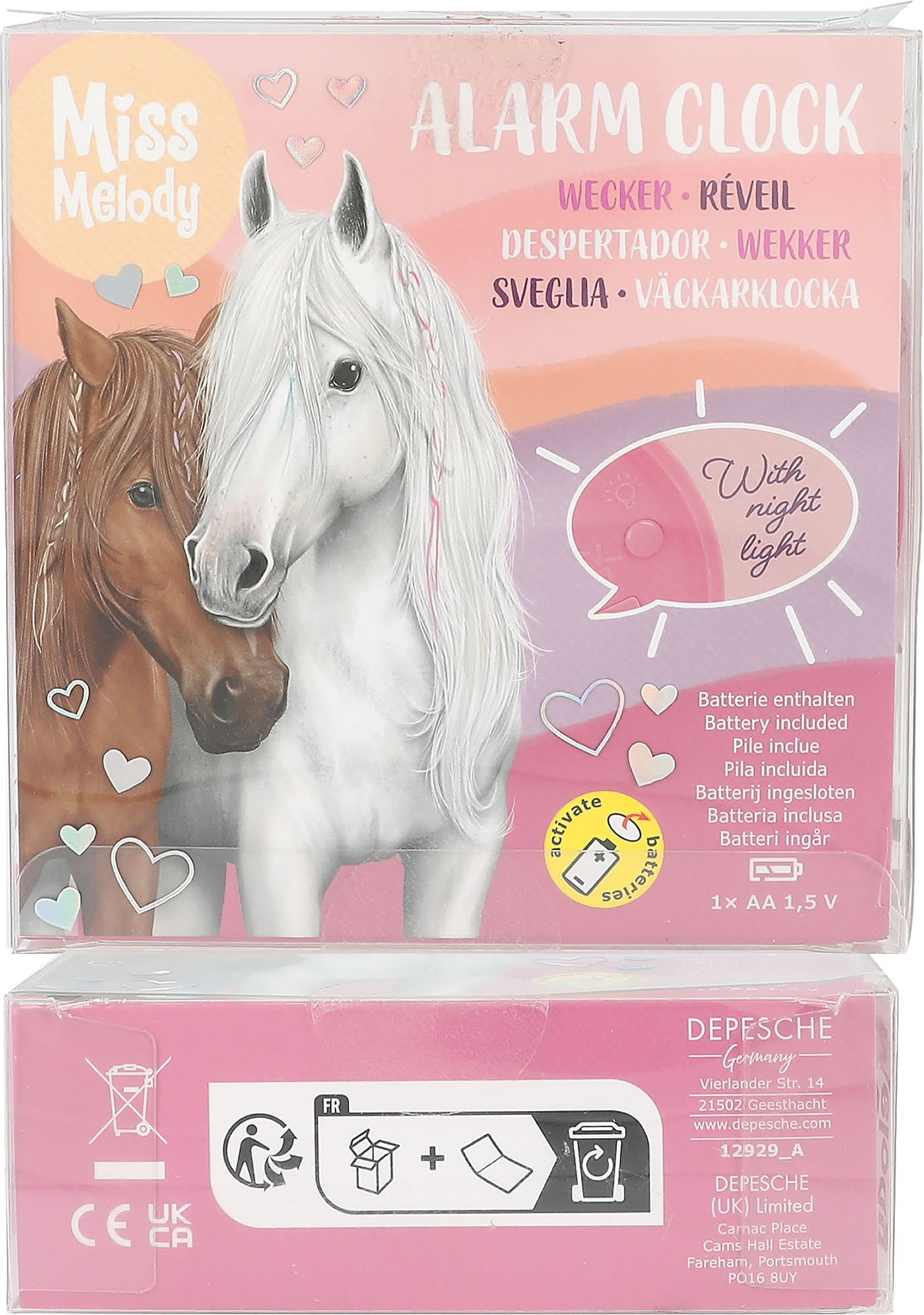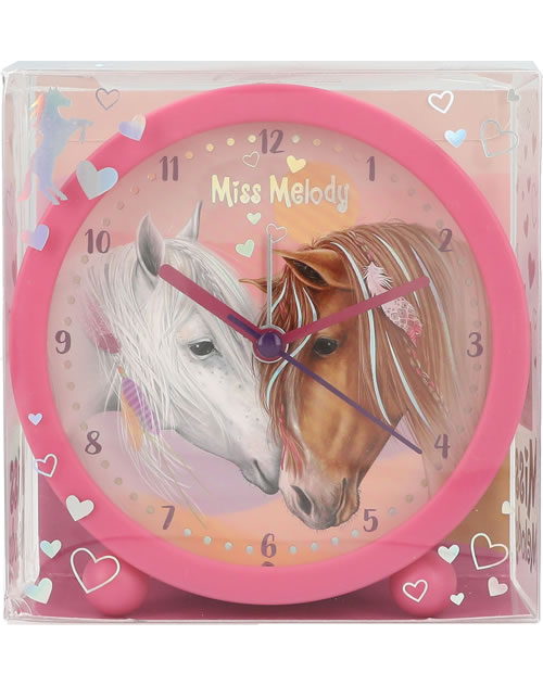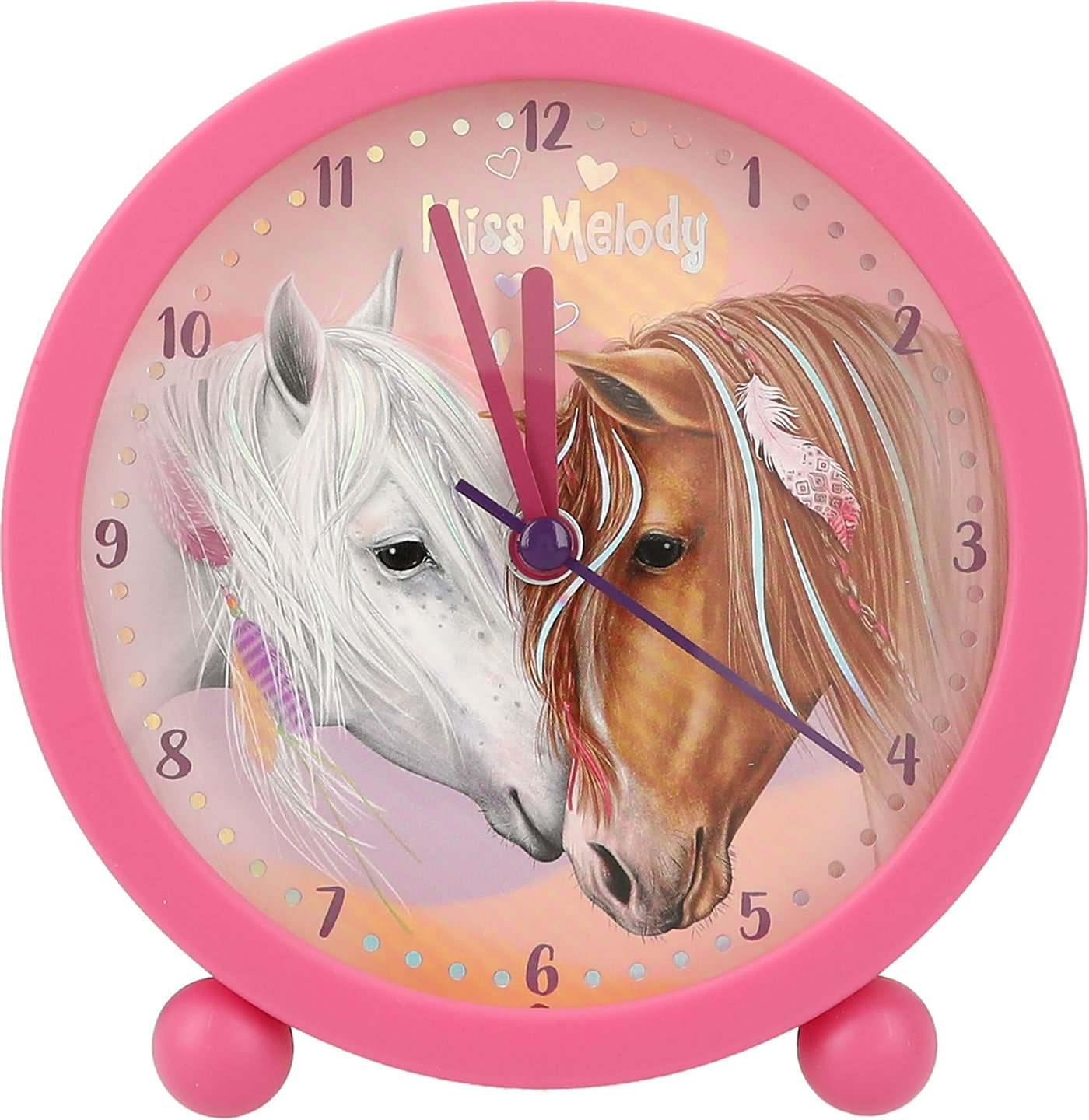 Zeit für Miss Melody: Der hübsche Wecker mit pinkem Gehäuse hat ein traumhaft schönes Ziffernblatt mit zwei Pferden vor roséfarbenem Hintergrund. Er verfügt über eine Lichtfunktion auf Knopfdruck sowie geräuschlose Zeiger.