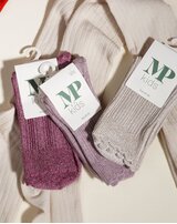 Die 'Celosia'-Socken von mpKids sind aus wunderbar weicher Bambusviskose mit feinem Glitzergarn gefertigt- so bringen sie nicht nur bequemen Tragekomfort, sondern auch ein wenig Zauber in jedes Outfit. ✨