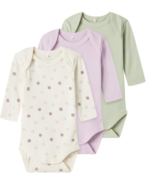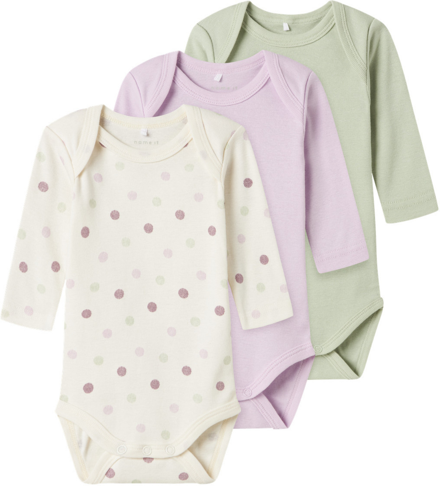 Tolles 3er Set Bodys von NAME IT für Babys. Alle Babybodys haben im Windelbereich eine Knopfleiste. Durch den praktischen Schlupf-Ausschnitt lassen sie sich leicht an- und ausziehen. Das weiche Material sorgt für einen hohen Tragekomfort.