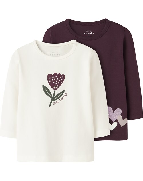 Name it Baby-Langarmshirts aus Bio-Baumwolle 2er-Pack NBFVUBIE - Weiß/Beere