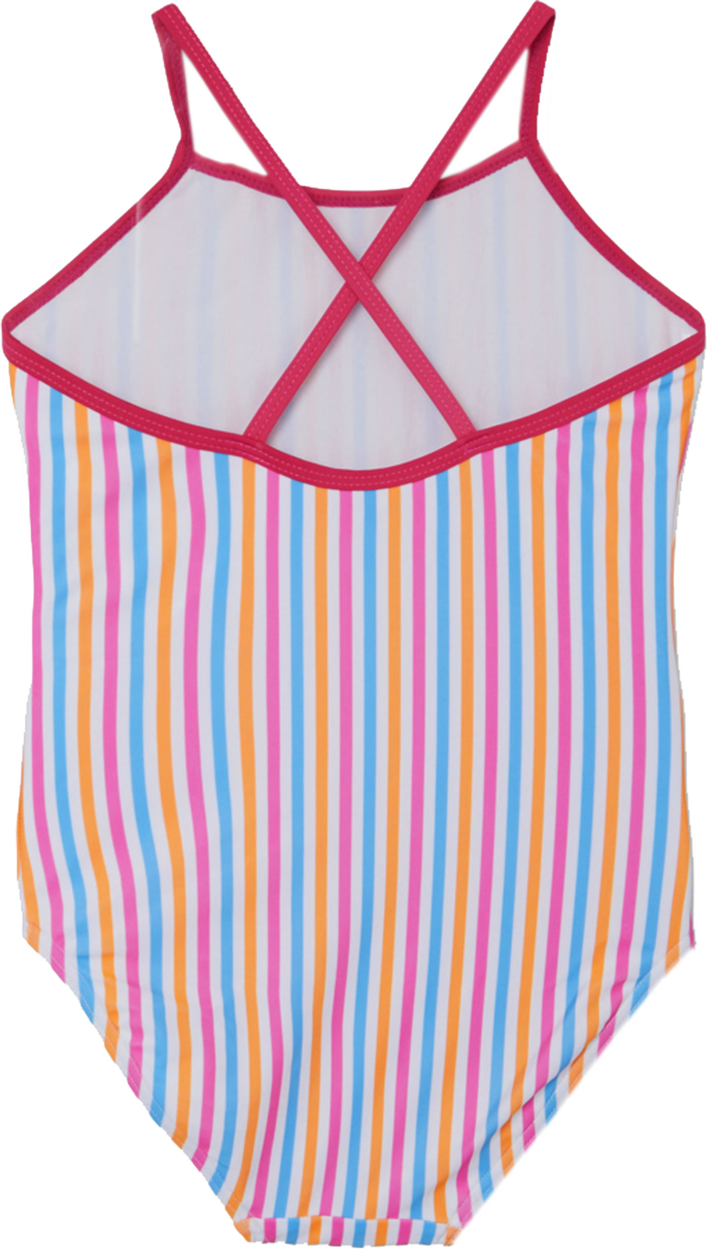 Farbenfroher Badeanzug. Schöner Schnitt und passt auch schmalen Kindern gut.