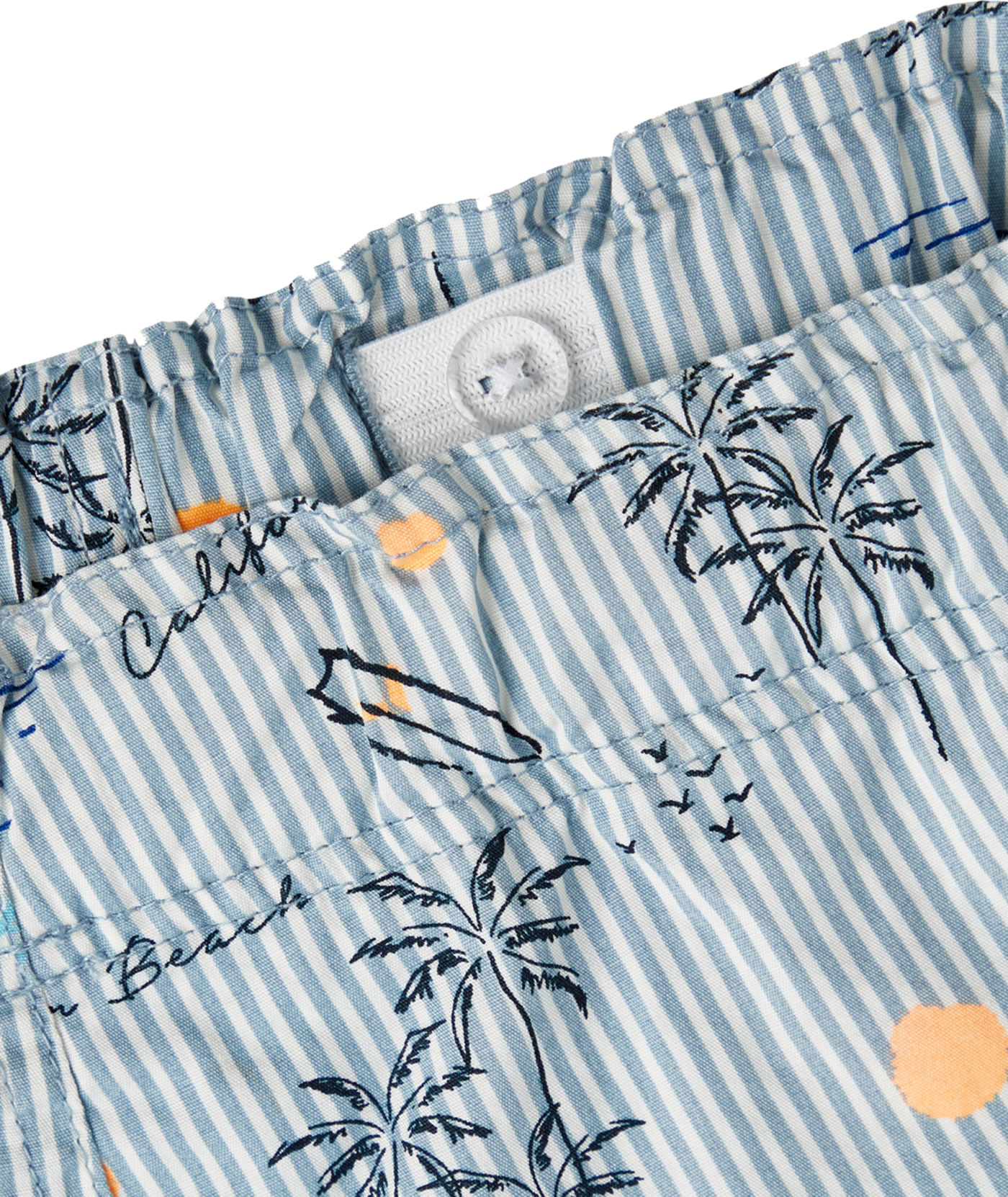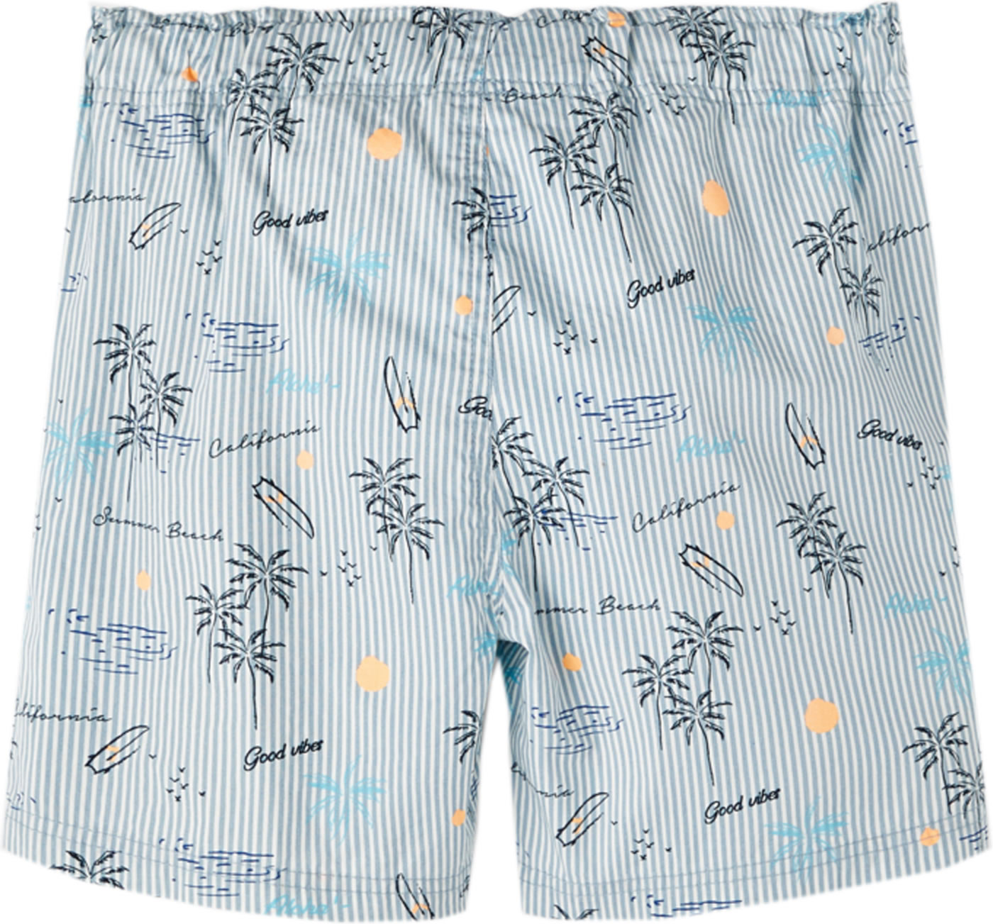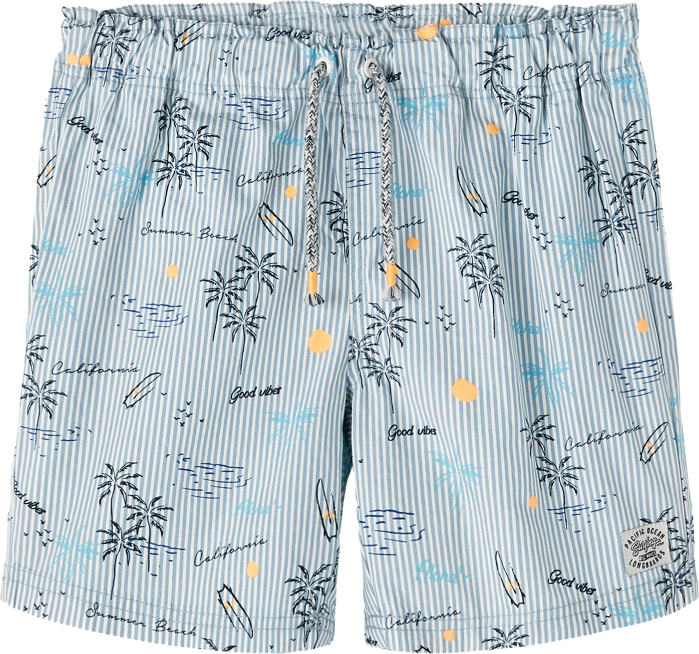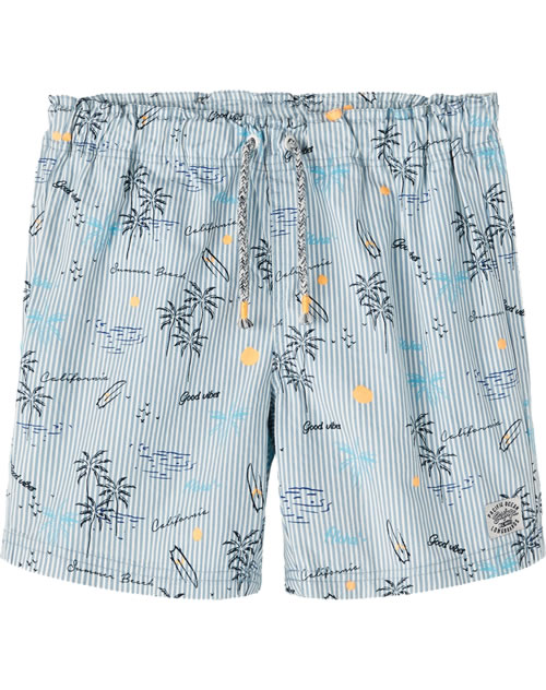 Coole Badeshorts für Jungen von NAME IT. Die Weite läßt sich innen im Hosenbund regulieren. Die sommerlichen Motive in Kombination mit den Streifen machen die Badeshorts zu einem echten Hingucker.