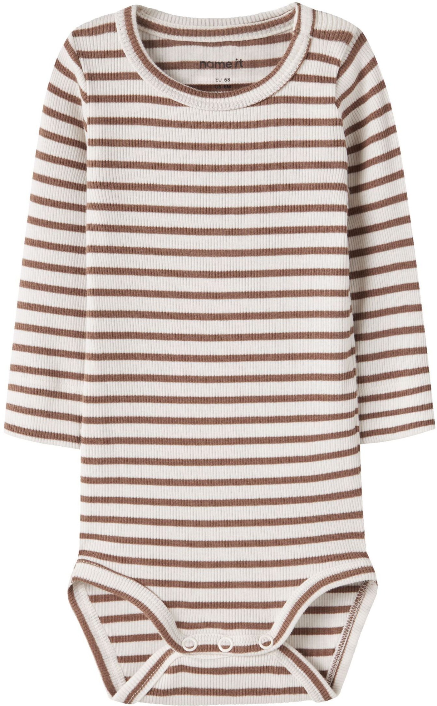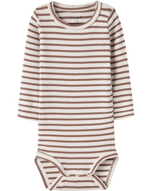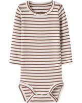 Dieser schöne langärmlige Rippstrick-Body mit Rundhalsausschnitt besteht aus Bio-Baumwolle und Modal, wodurch er sich schön weich auf der Haut anfühlt. 🥰