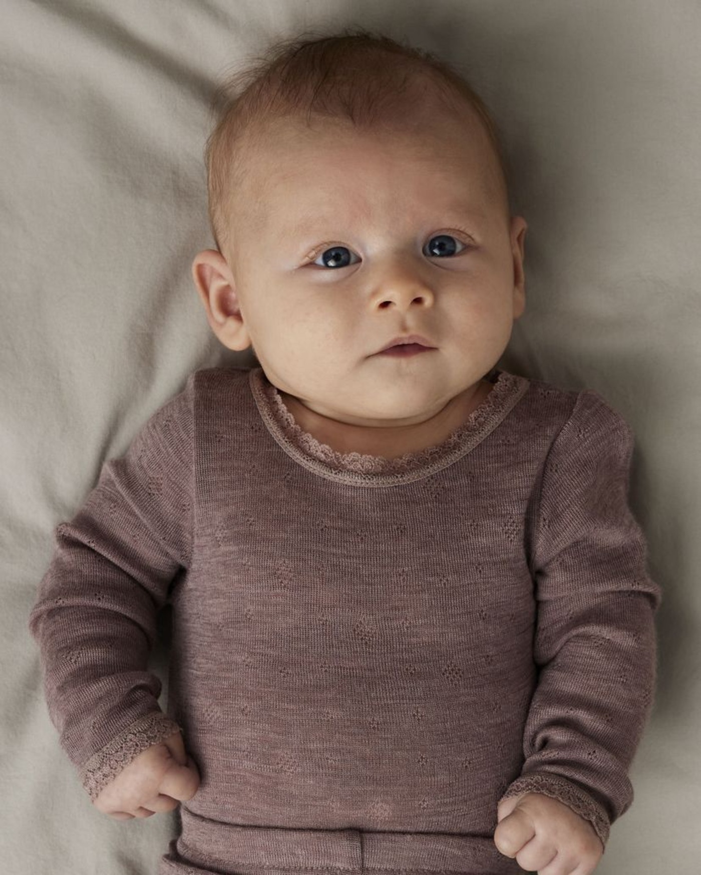 Dieser langärmelige Body aus 100 % Merinowolle ist ideal für empfindliche Babyhaut – natürlich wärmend, atmungsaktiv und superweich.