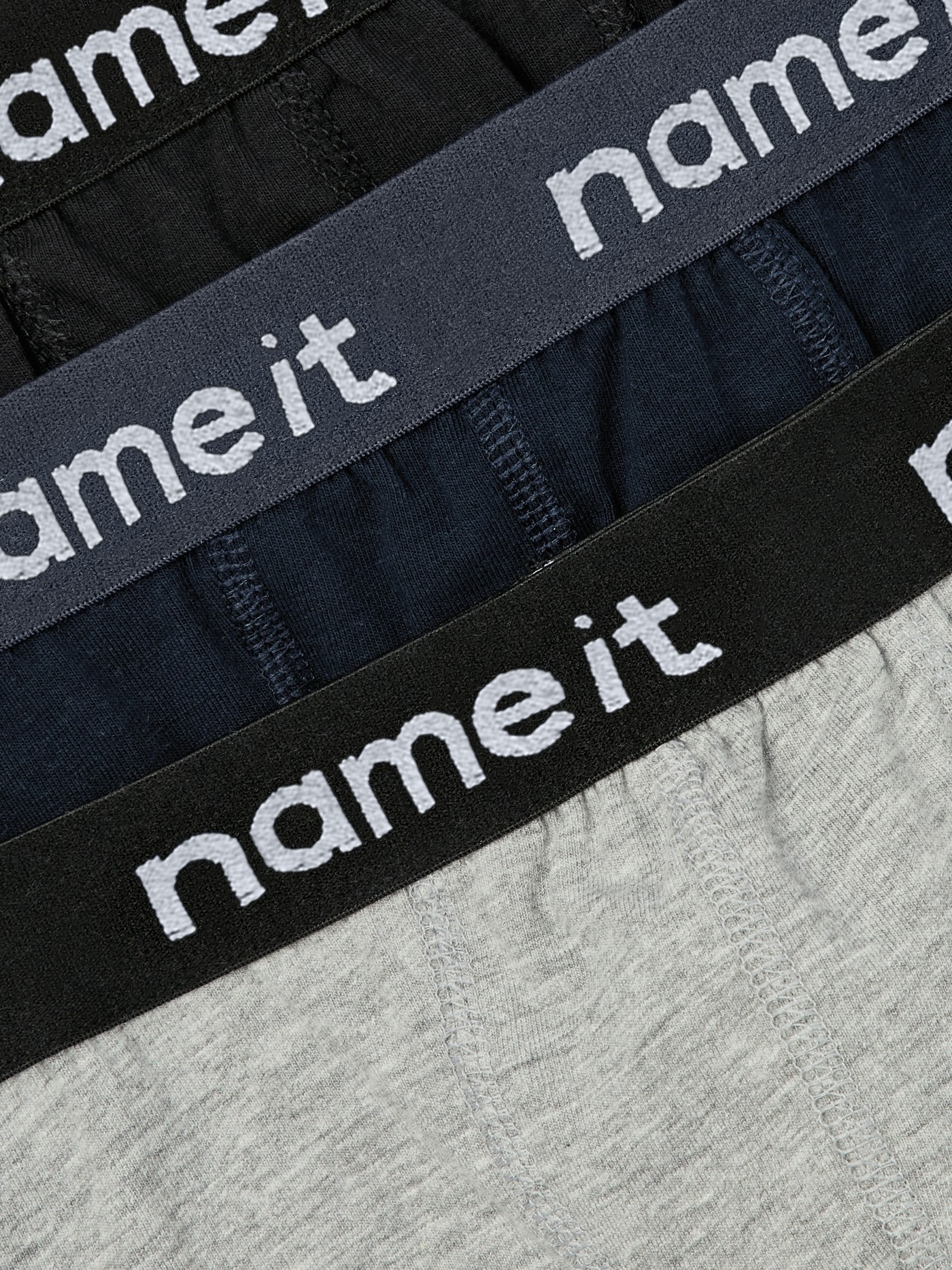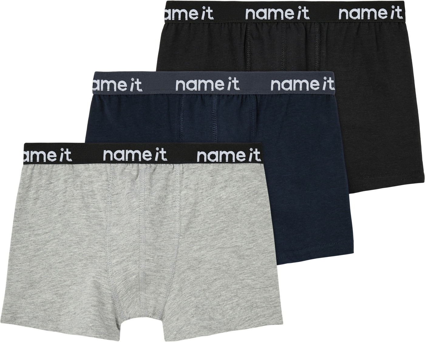 Diese coolen Boxershorts gibt es direkt im Dreierpack in den Farben Schwarz, Dunkelblau und Grau. 👍