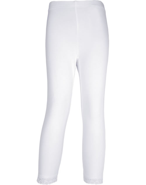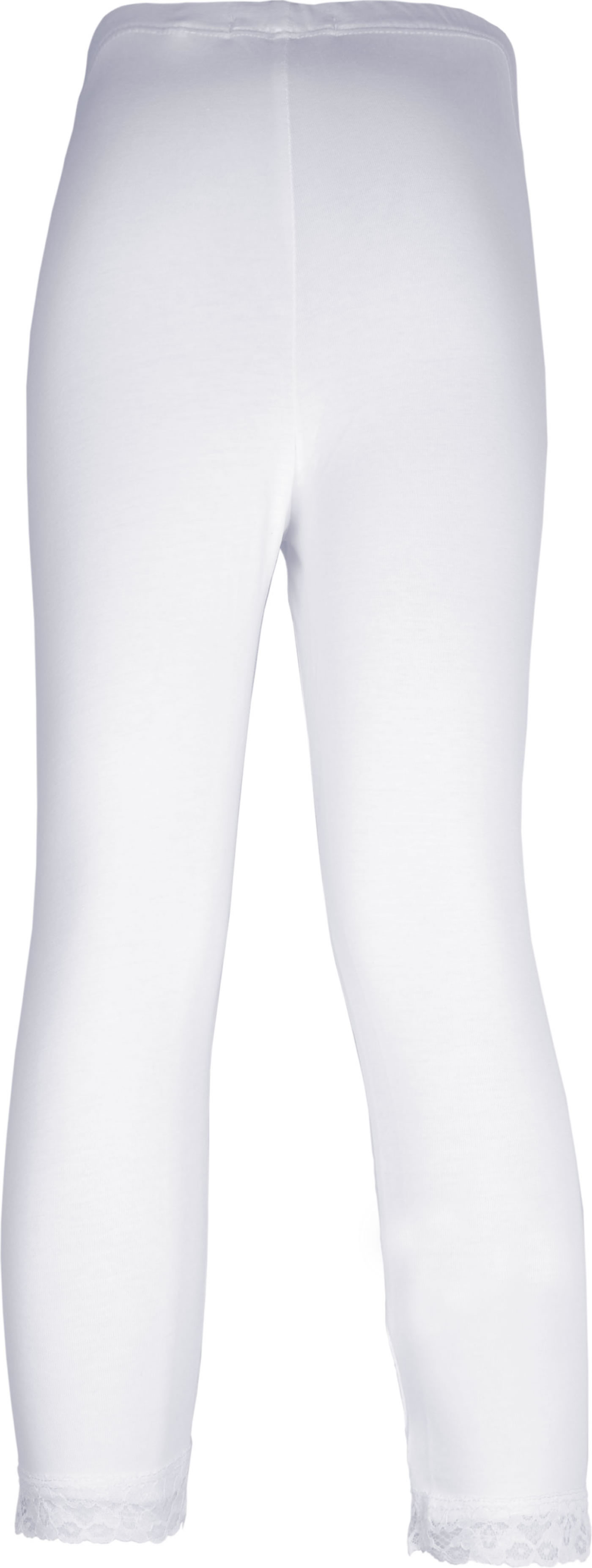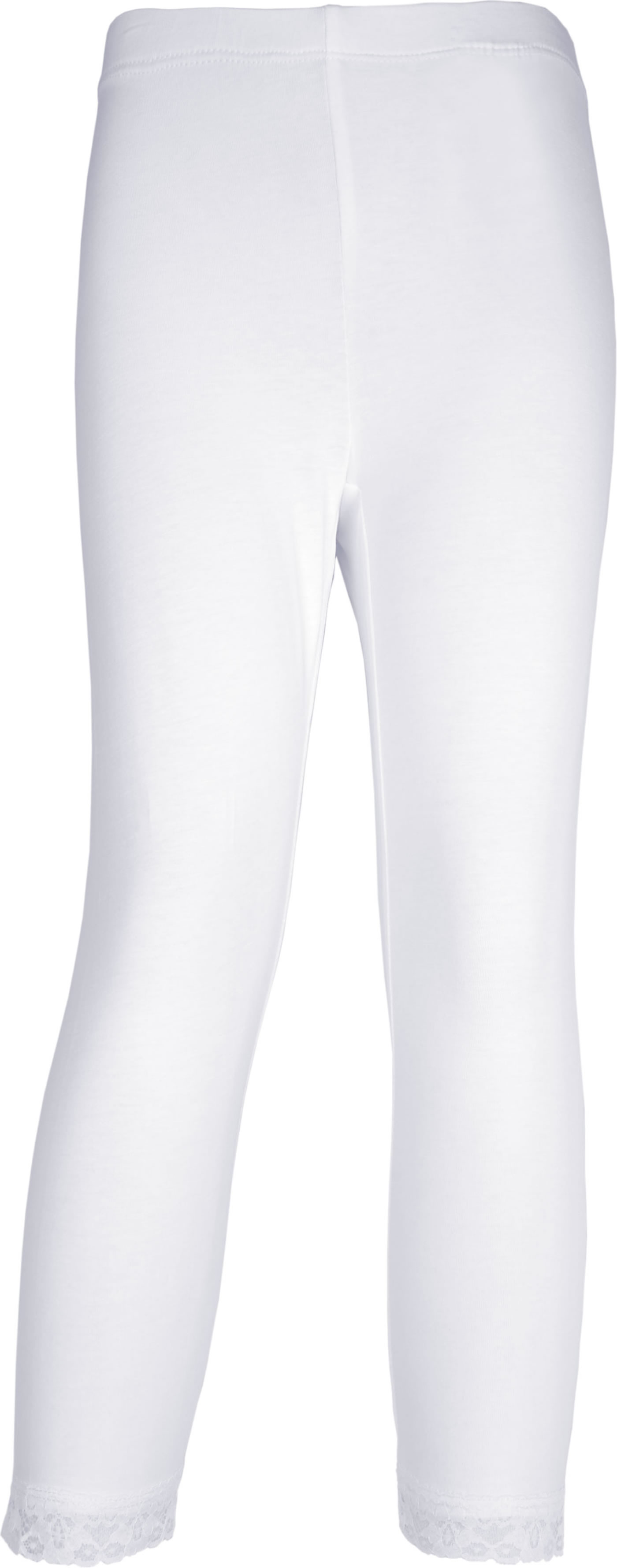Schöne Capri-Leggings aus Baumwolle in weiß von NAME IT für Mädchen. Am Beinende befindet sich ein hübscher Spitzen-Saum.