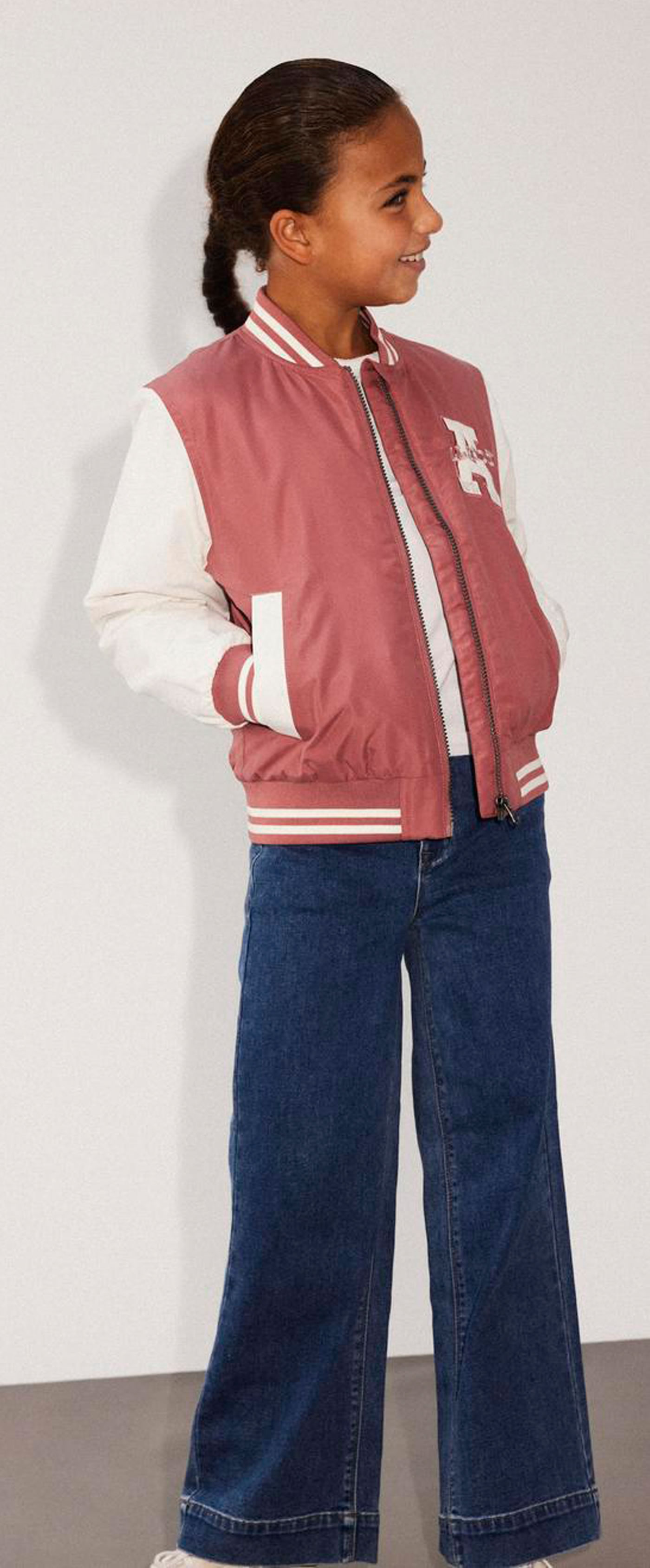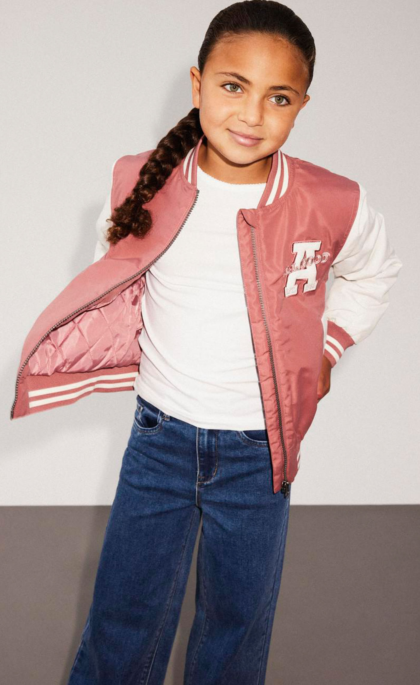 Tolle modische College-Jacke im Bomber-Look von NAME IT für Jungen und Mädchen. Mit den breiten Rippenbündchen am Halsausschnitt, den Ärmeln und am Saum sitzt sie optimal. Geschlossen wird sie mit einem Reißverschluss der einen Kinnschutz hat. Zwei Einschubtaschen bieten Platz für Kleinigkeiten. Weitere hübsche Details ist die Applikation auf der Brust. Die Jacke ist mit einem warmen Steppfutter versehen und somit auch für kühle Tage geeignet.