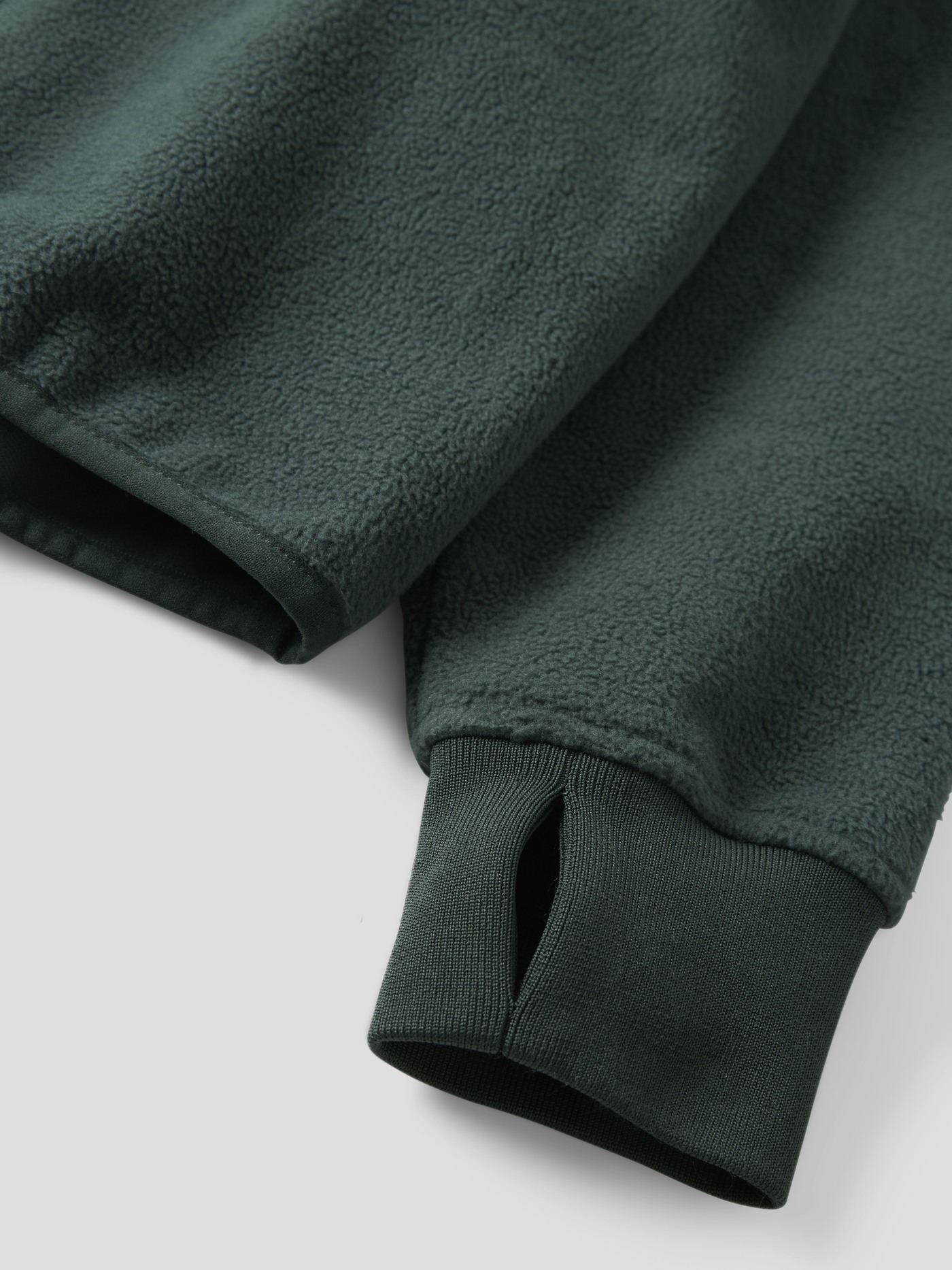 An den Ärmelenden hat sie Löcher für die Daumen.