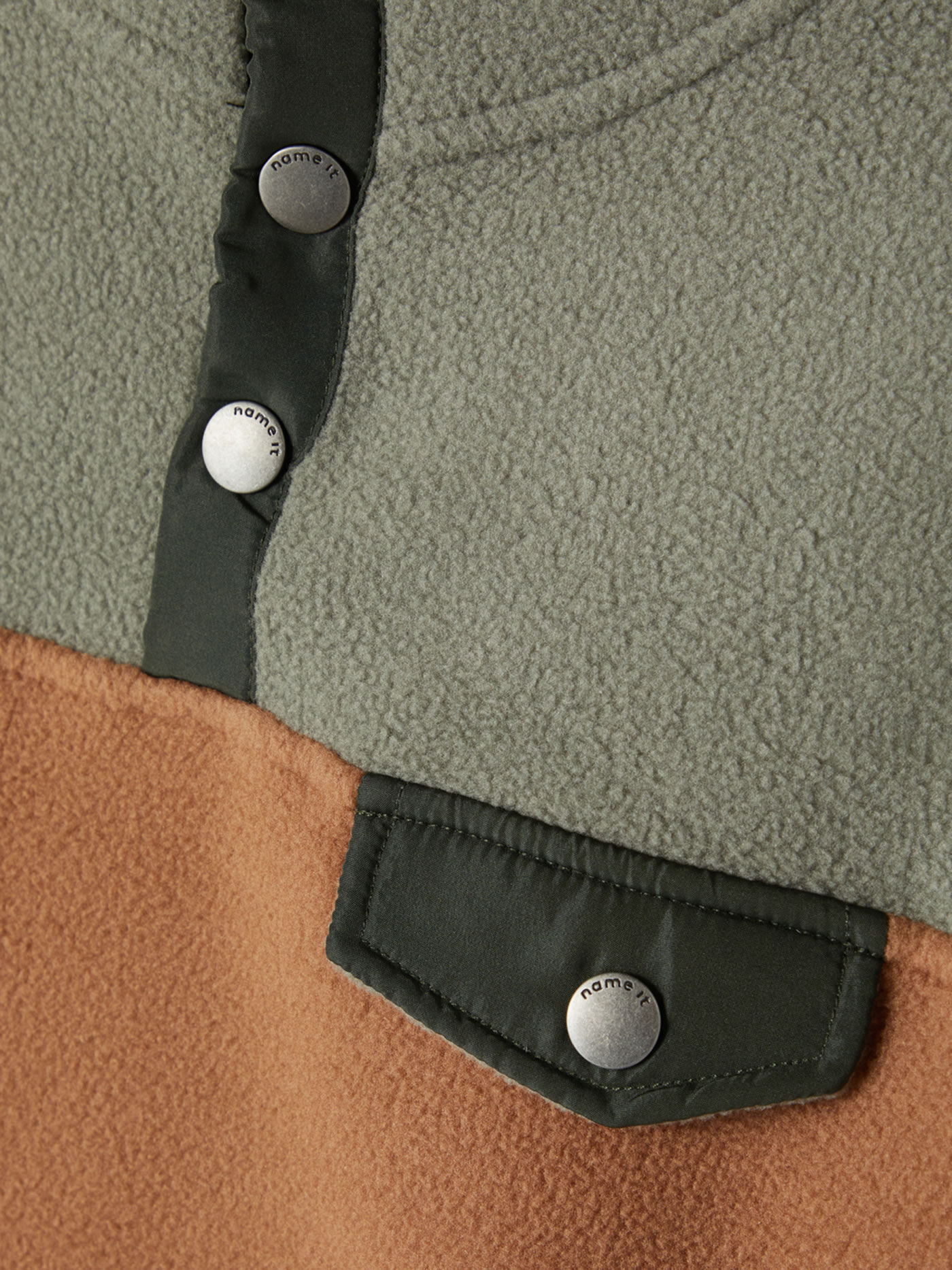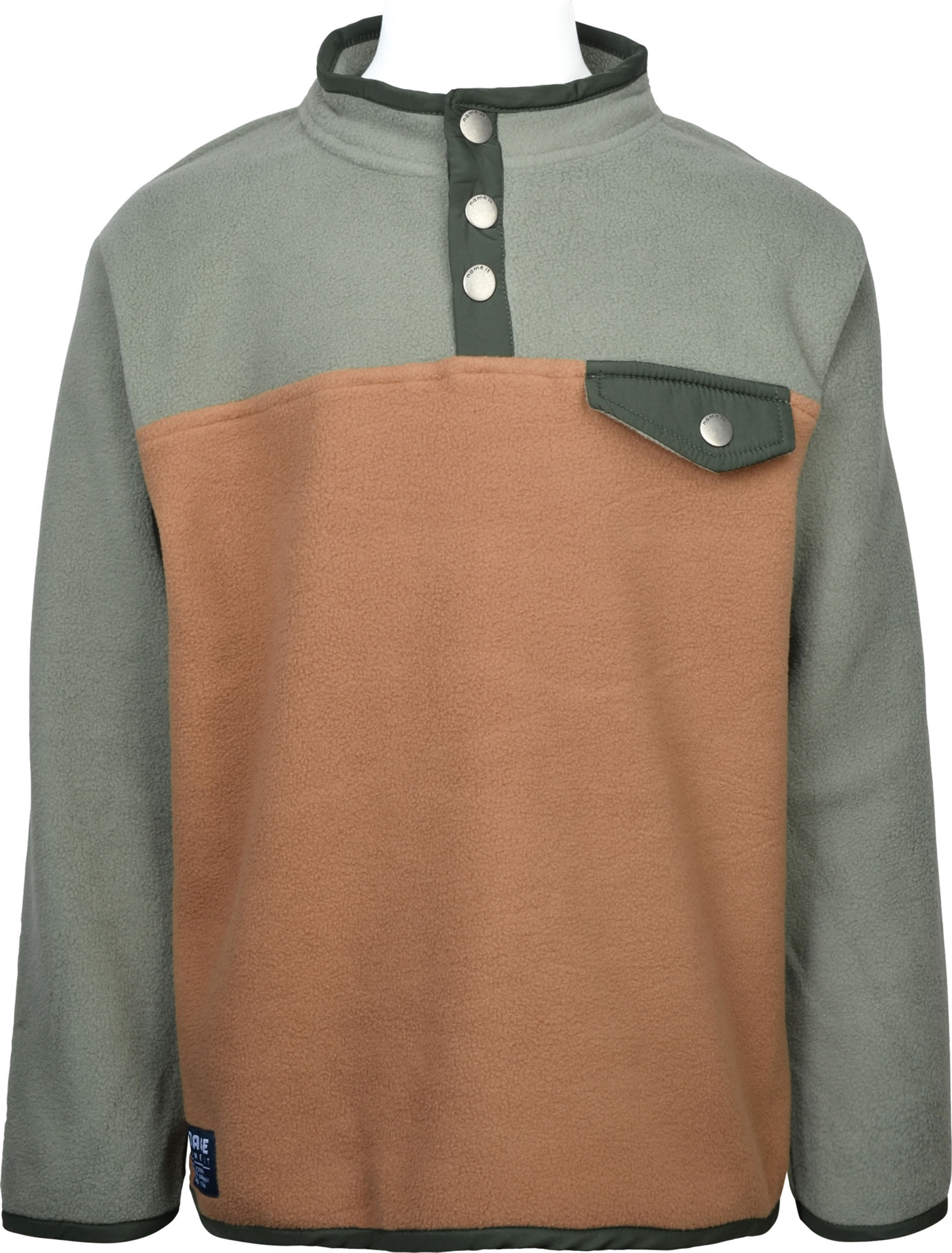 Fleece-Sweatshirt von NAME IT für Jungen mit Druckknopfleiste und Stehkragen. Der lockere Schnitt bietet einen hohen Tragekomfort. Schöne Details sind die Farbkombination und die angedeutete Brusttasche.