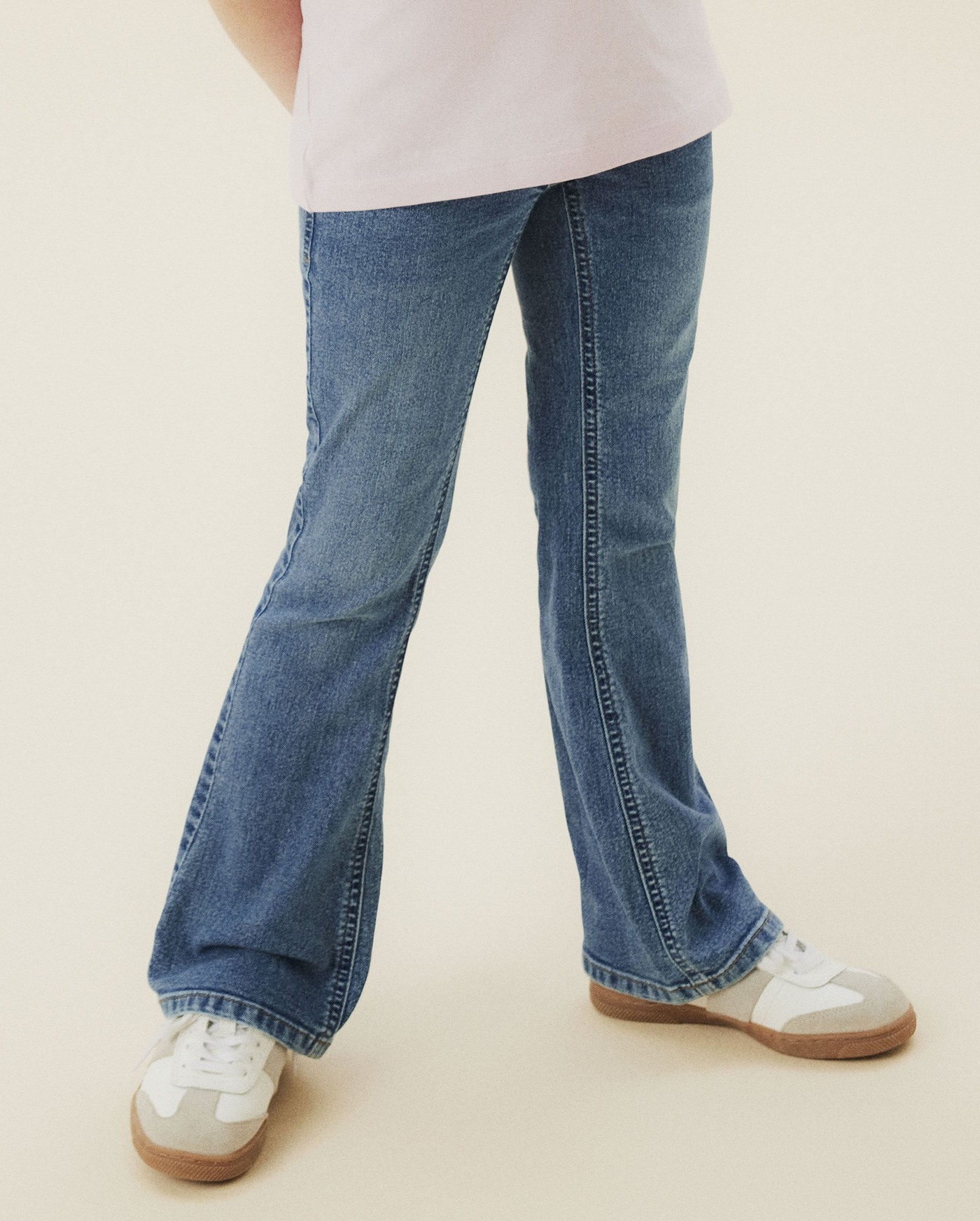 Diese lässige Jeans kombiniert einen körpernahen Schnitt an der Hüfte mit einem trendigen ausgestellten Bein – für einen modernen Look mit Retro-Charme.