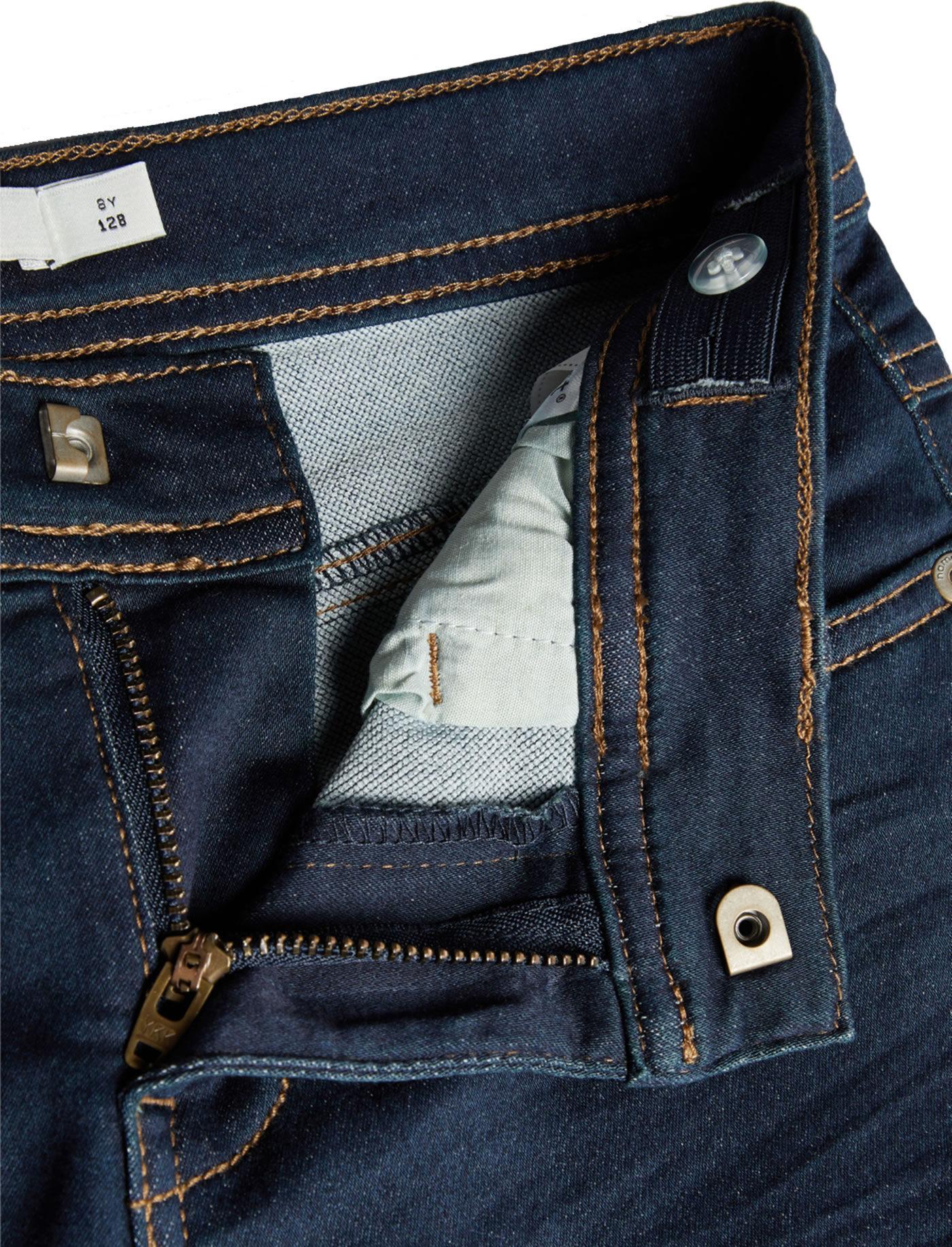 Gerade geschnitte Jeans-Hose mit schmalem Bein in dark blue denim für Jungen von NAME IT. Diese Hose macht jedes Outfit zu einem Blickfang. Auf der Vorder- sowie auf der Rückseite befinden sich Taschen. Details wie Falten machen diese Hose zu einem Lieblingsstück, das sich wunderbar kombinieren lässt. Mit einem Gummibund mit Knöpfen auf der Bundinnenseite lässt sich die Hose in der Weite verstellen.
