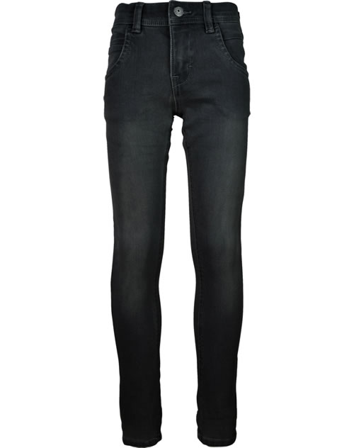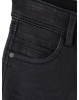 Schmal geschnitte Jeans-Hose mit schmalem Bein in black denim für Jungen von NAME IT. Diese Hose macht jedes Outfit zu einem Blickfang. Auf der Vorder- sowie auf der Rückseite befinden sich zwei Taschen. Details wie die Waschungen und Falten machen diese Hose zu einem Lieblingsstück, das sich wunderbar kombinieren lässt. Mit einem Gummibund mit Knöpfen auf der Bundinnenseite lässt sich die Hose in der Weite verstellen.