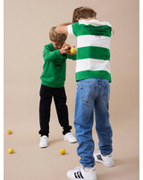 Details wie die Waschung und die Destroyed-Elemente machen diese Hose zu einem Lieblingsstück, das sich wunderbar kombinieren lässt. Mit einem Gummibund mit Knöpfen auf der Bundinnenseite lässt sich die Hose in der Weite verstellen.