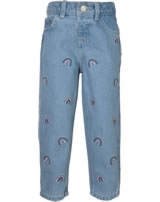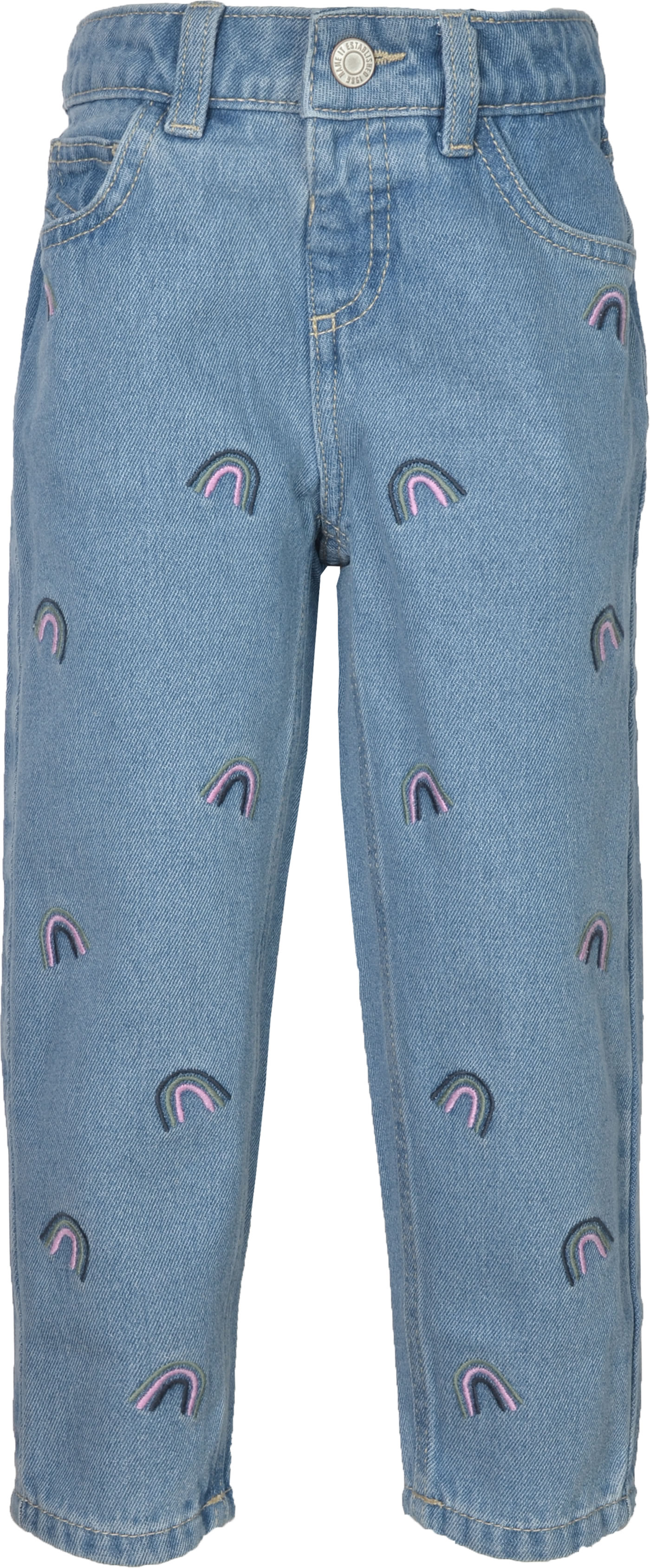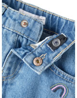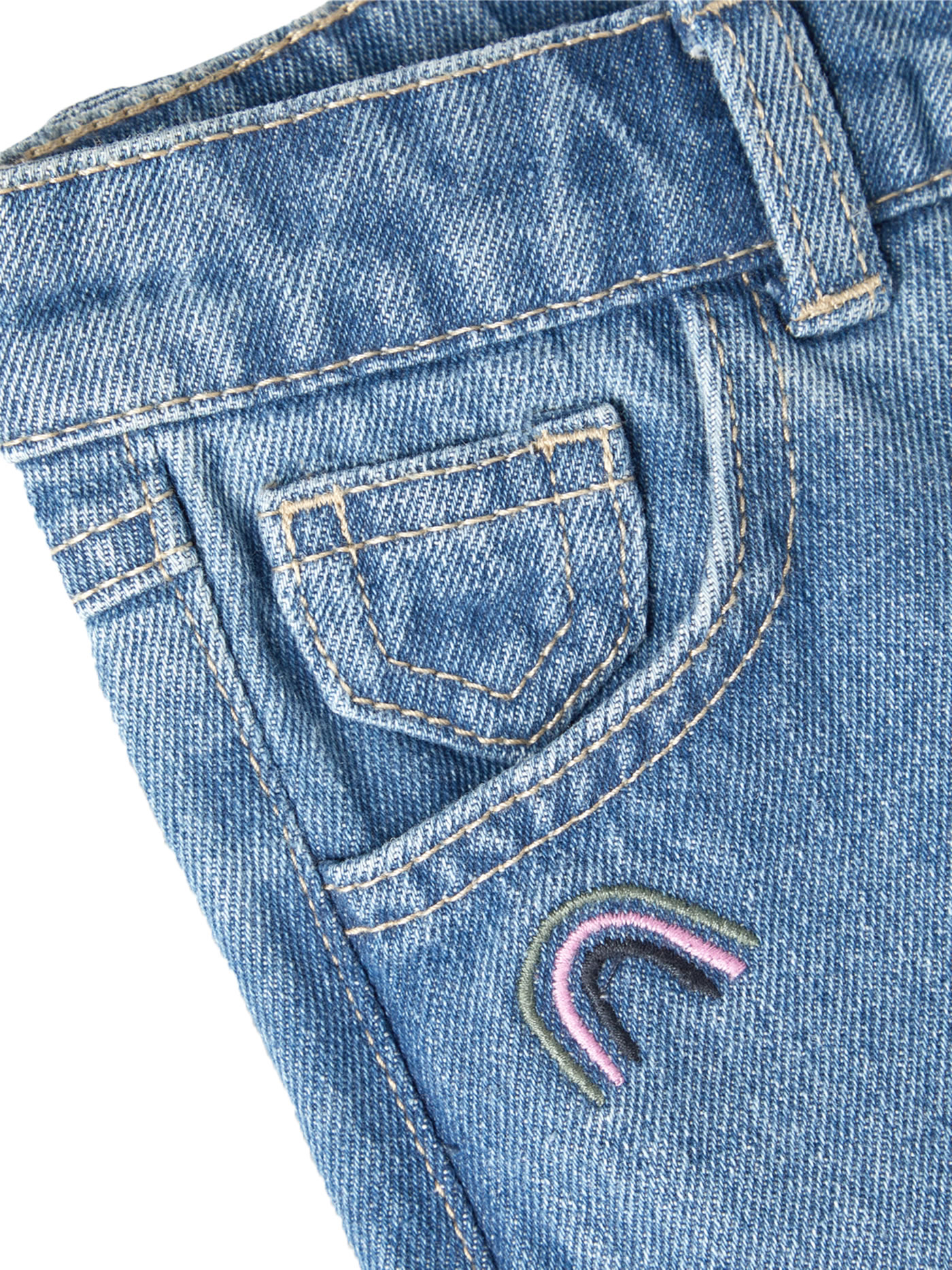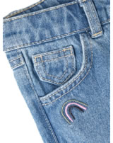 Lässig geschnittene Jeans-Hose mit schmalem Bein in medium blue denim für Mädchen von NAME IT. Auf der Vorder- sowie auf der Rückseite befinden sich zwei Taschen. Details, wie die Regenbogenstickereien machen diese Hose zu einem Lieblingsstück, das sich wunderbar kombinieren lässt. Mit einem Gummibund mit Knöpfen auf der Bundinnenseite lässt sich die Hose in der Weite verstellen. Verschlossen wird die Hose per Druckknopf.