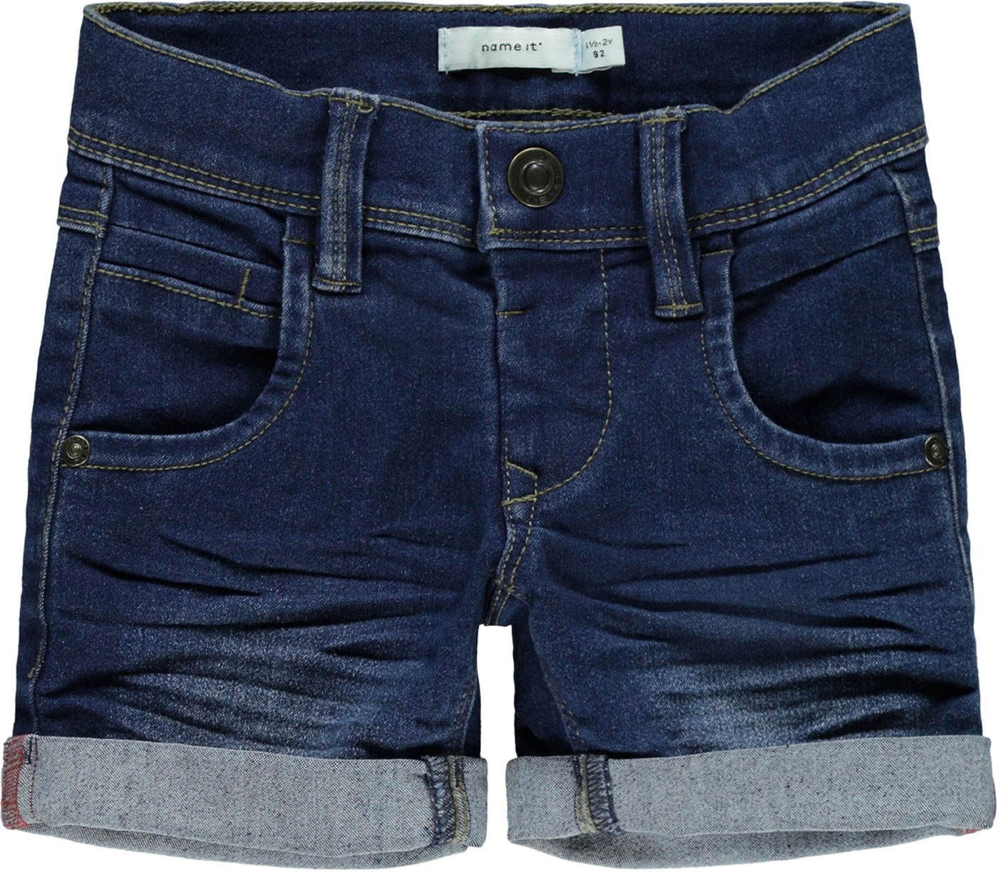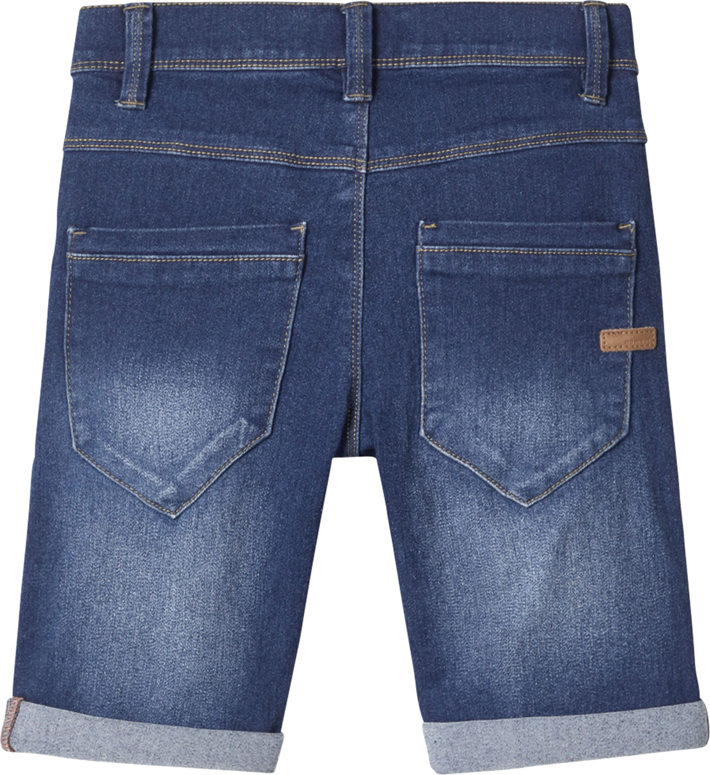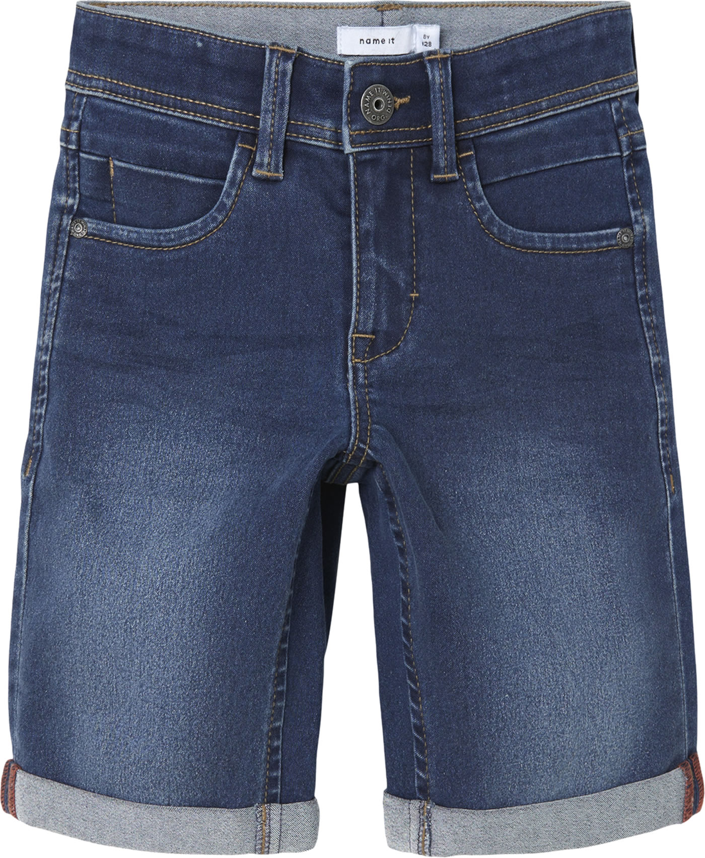 Blaue Jeans-Shorts NKMSOFUS von NAME IT für Jungen. Die Hose hat fünf Taschen. Modische Falten und tief sitzende Po-Taschen sind zusätzliche Hingucker. Die Hosenbeine sind lässig umgeschlagen. Die Jeanshose ist dank des Stretch-Anteils klasse dehnbar. Bündchen mit Druckknopfverschluss. Ein innen verstellbarer Hosenbund bietet optimalen Sitz.