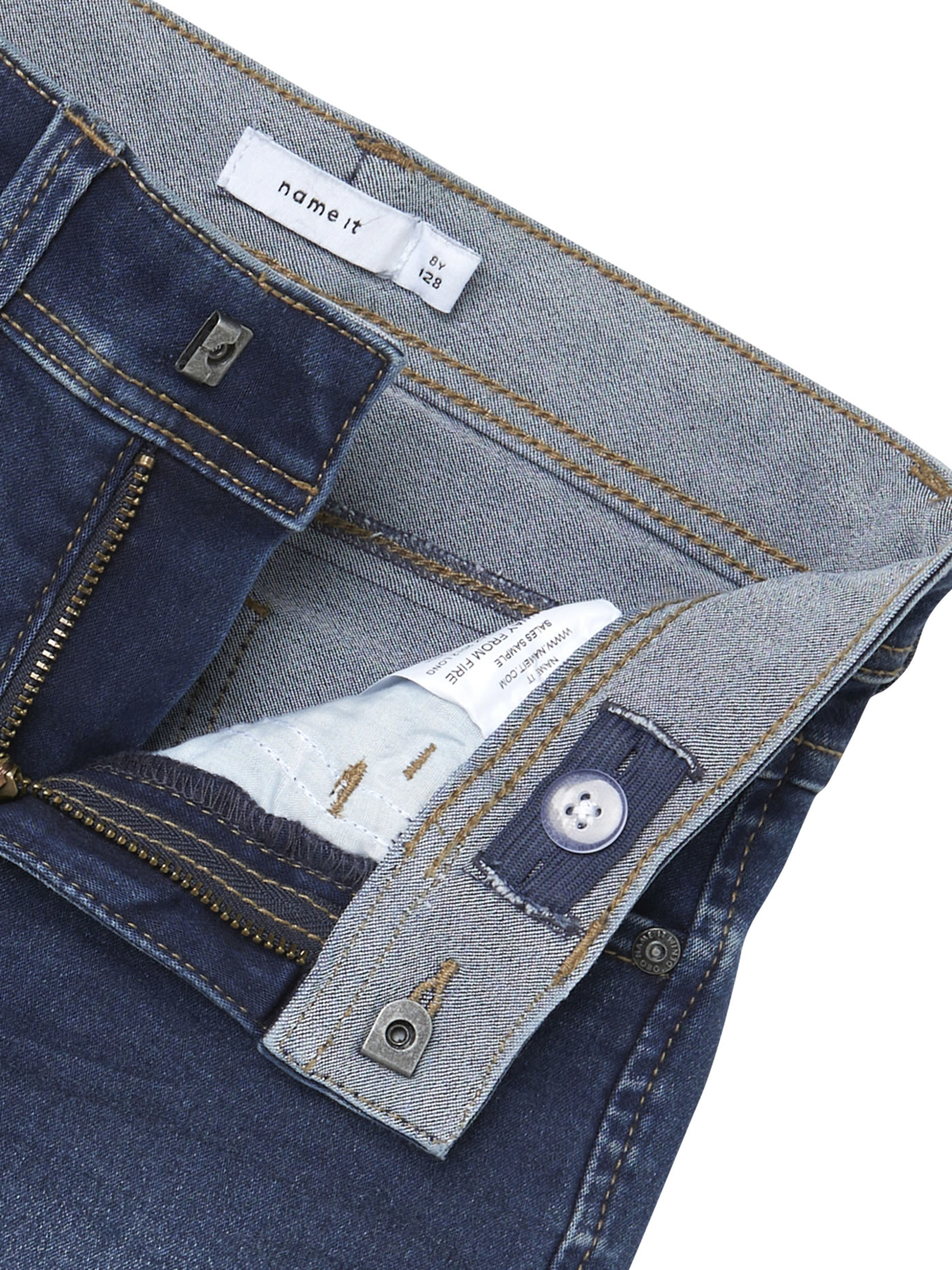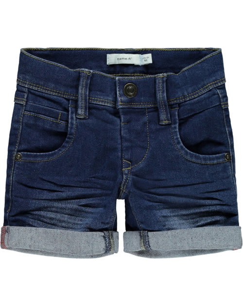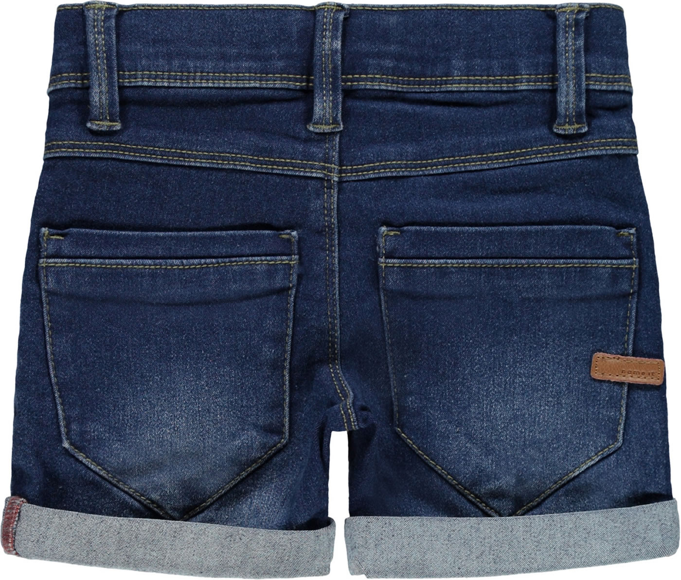 Blaue Jeans-Shorts NKMSOFUS von NAME IT für Jungen. Die Hose hat fünf Taschen. Modische Falten und tief sitzende Po-Taschen sind zusätzliche Hingucker. Die Hosenbeine sind lässig umgeschlagen. Die Jeanshose ist dank des Stretch-Anteils klasse dehnbar. Bündchen mit Druckknopfverschluss. Ein innen verstellbarer Hosenbund bietet optimalen Sitz.