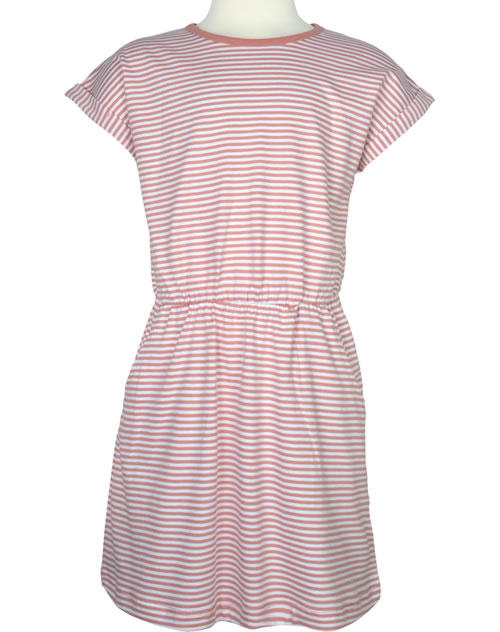 Gestreiftes Jersey-Kleid von NAME IT. Der lockere Schnitt des Kleides ist ideal für den Sommer und lässt sich prima kombinieren. Das Gummibündchen in der Taille sorgt für einen guten Sitz. Das weiche Material bietet einen hohen Tragekomfort und macht jede Bewegung mit. Auf der Vorderseite befinden sich zwei Taschen.