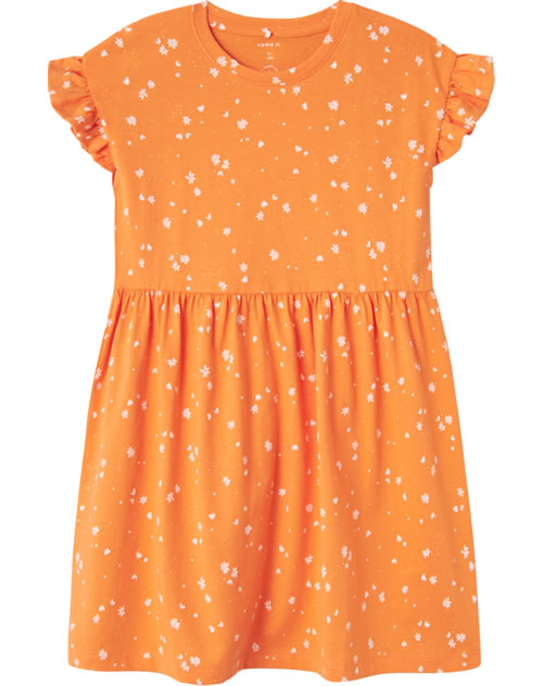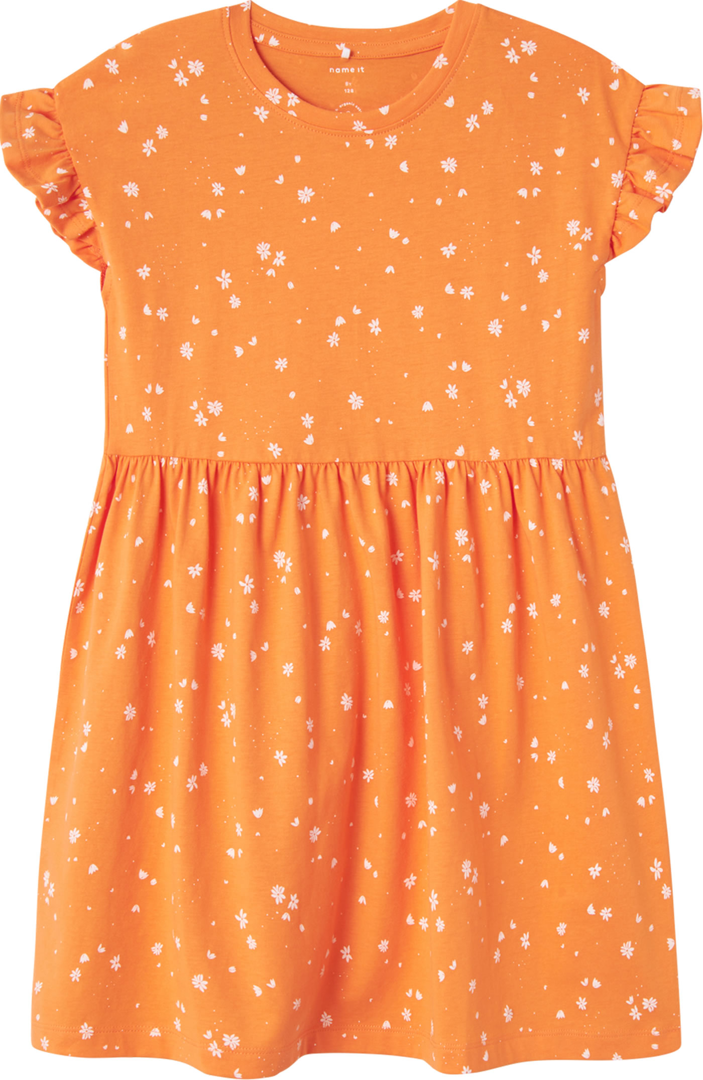 Tolles Kurzarm-Kleid mit hübschen Blüten-Print von NAME IT. Der lockere Schnitt bietet viel Bewegungsfreiheit. Das Kleid aus weichem Jersey hat schöne Flügelärmel und läßt sich prima mit einer Leggings kombinieren oder auch solo getragen werden.