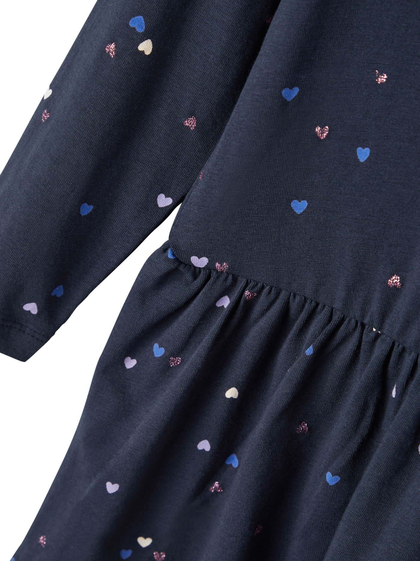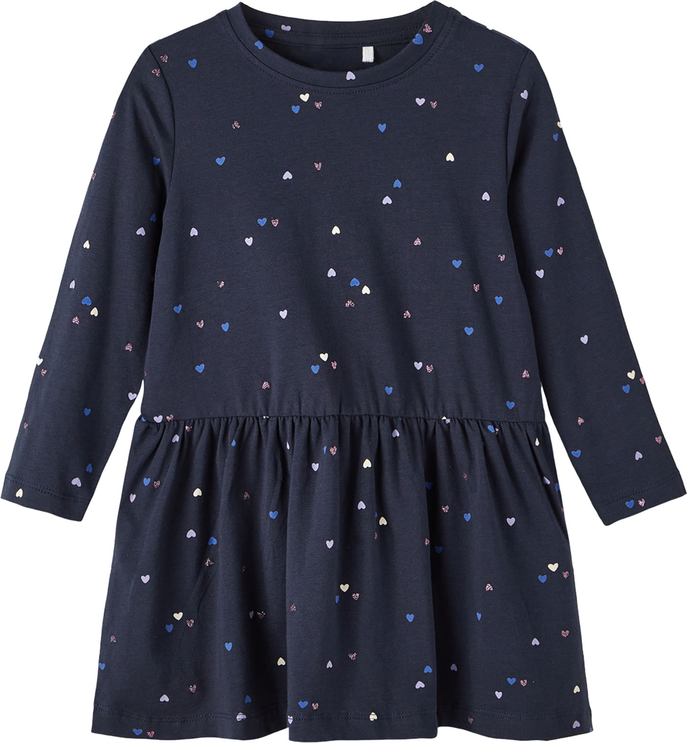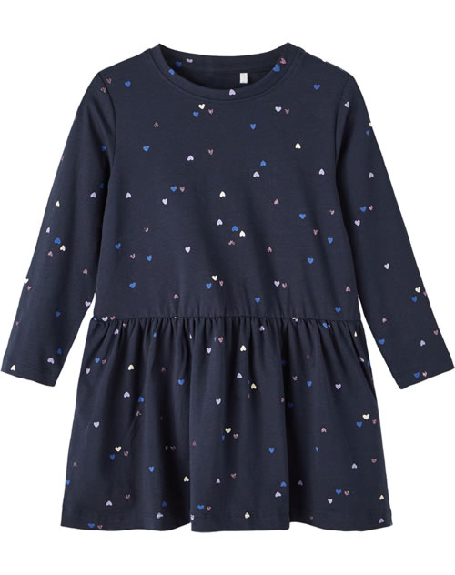 Hübsches Kleid aus leichtem Jersey-Stoff von NAME IT. Das Herzchen-Muster macht dieses Kleid schnell zu einem Lieblingsstück. Das Kleid lässt sich prima mit Leggings oder Strumpfhose kombinieren.